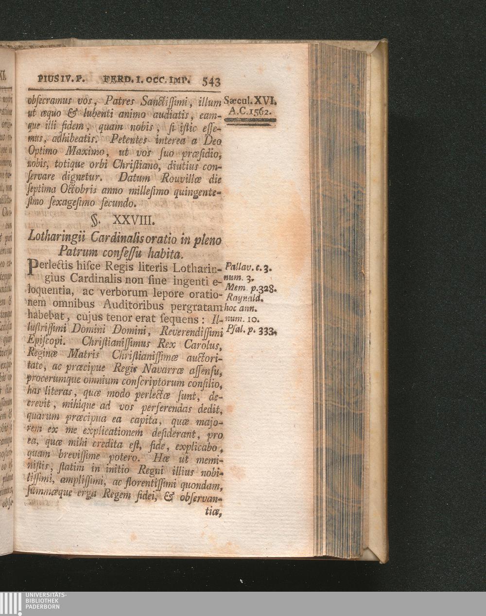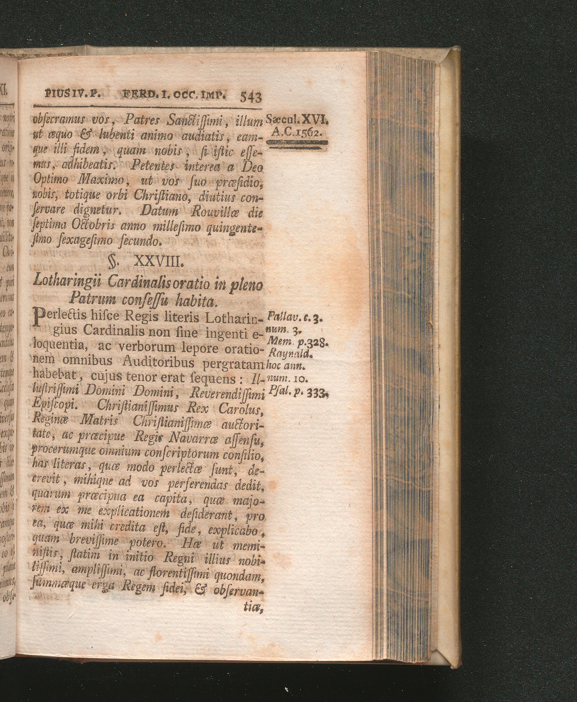 §. 28. Lotharingii Cardinalis oratio in pleno Patrum consessu habita.