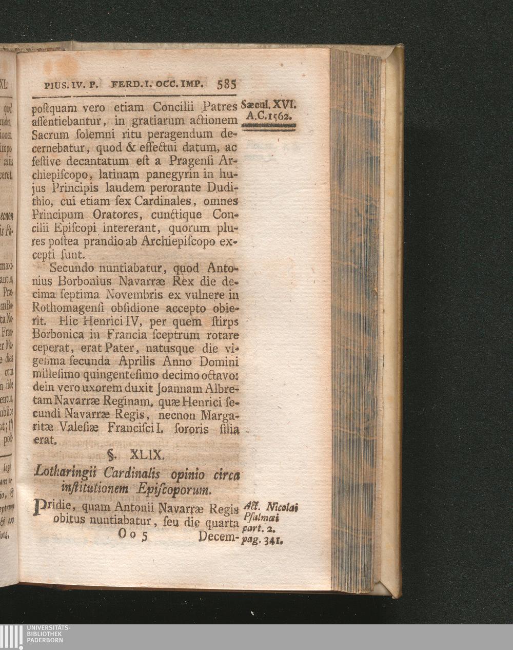 Ab anno Christi 1562 usque ad annum 1563