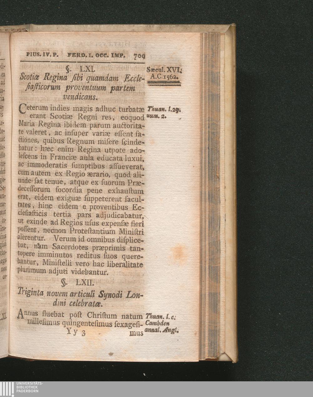 §. 61. Scotiæ Regina bonorum Ecclesiasticorum partem sibi vendicans.