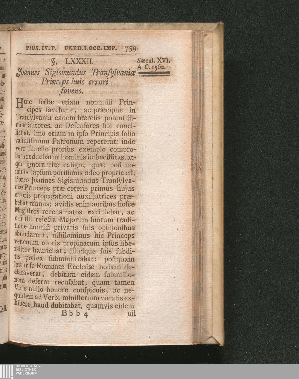 §. 82. Joannes Sigismundus Transylvaniæ Princeps huic errori favens.