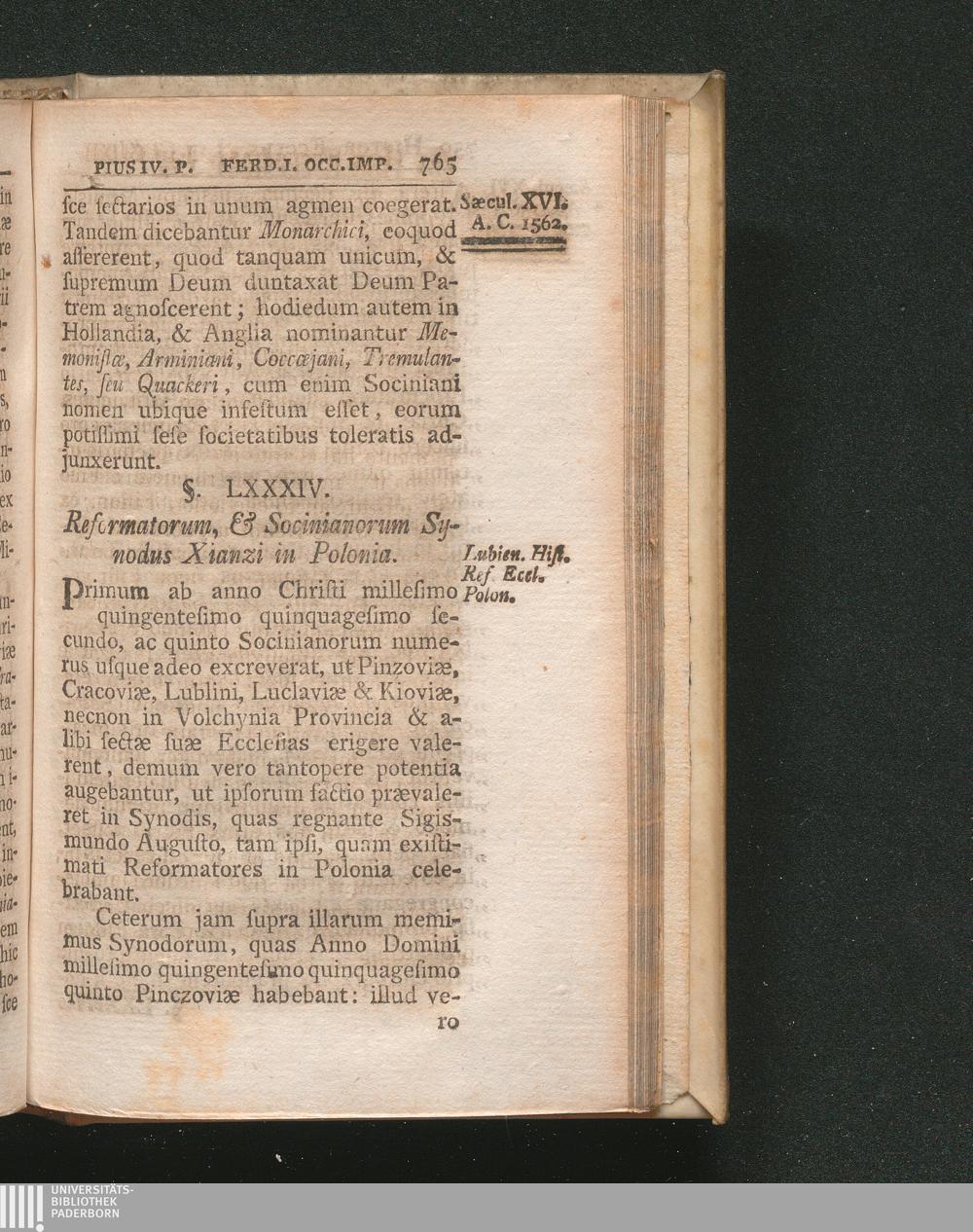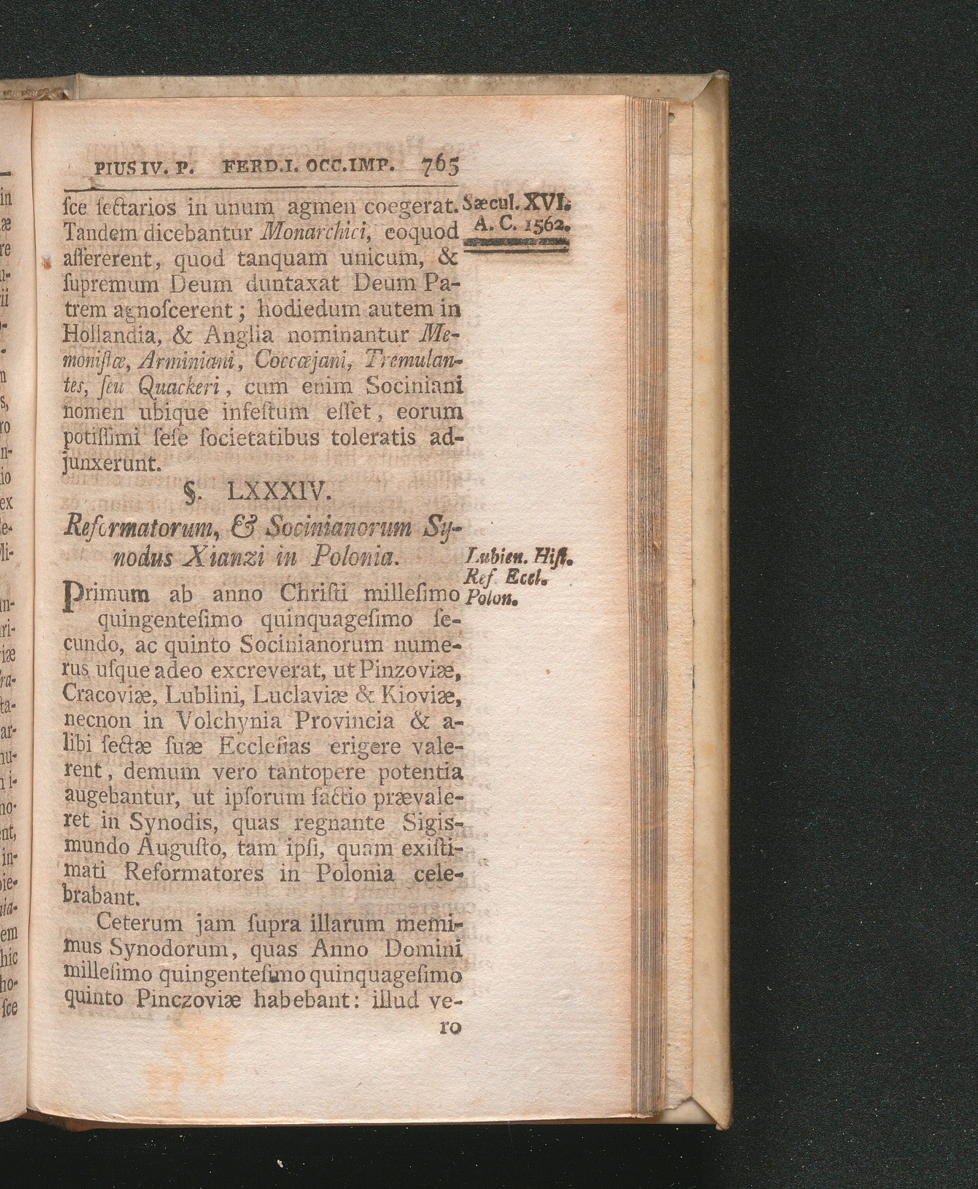 §. 84. Reformatorum & Socinianorum Synodus Xiansi in Polonia.