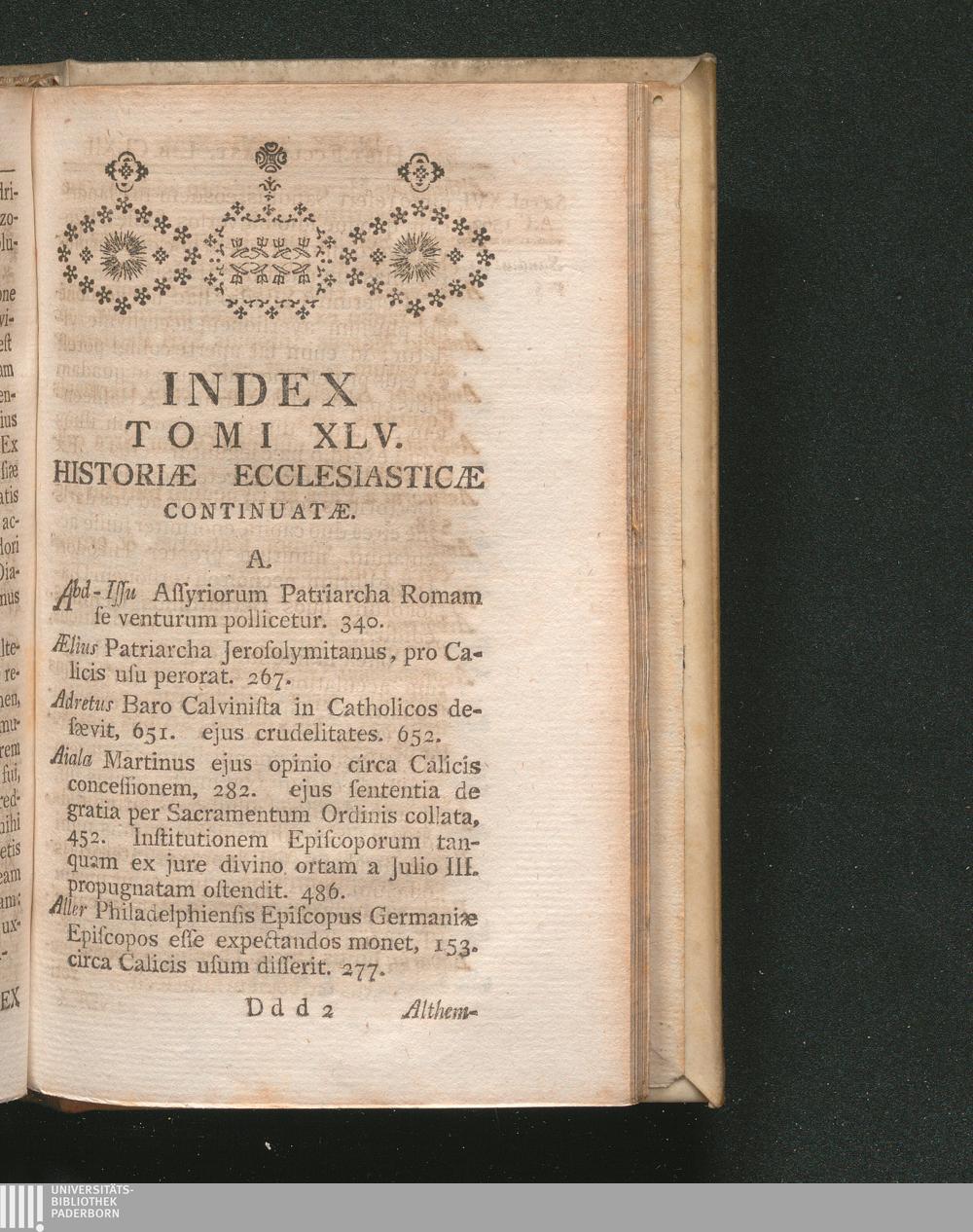 Index Tomi XLV. Historiæ Ecclesiasticæ Continuatæ.
