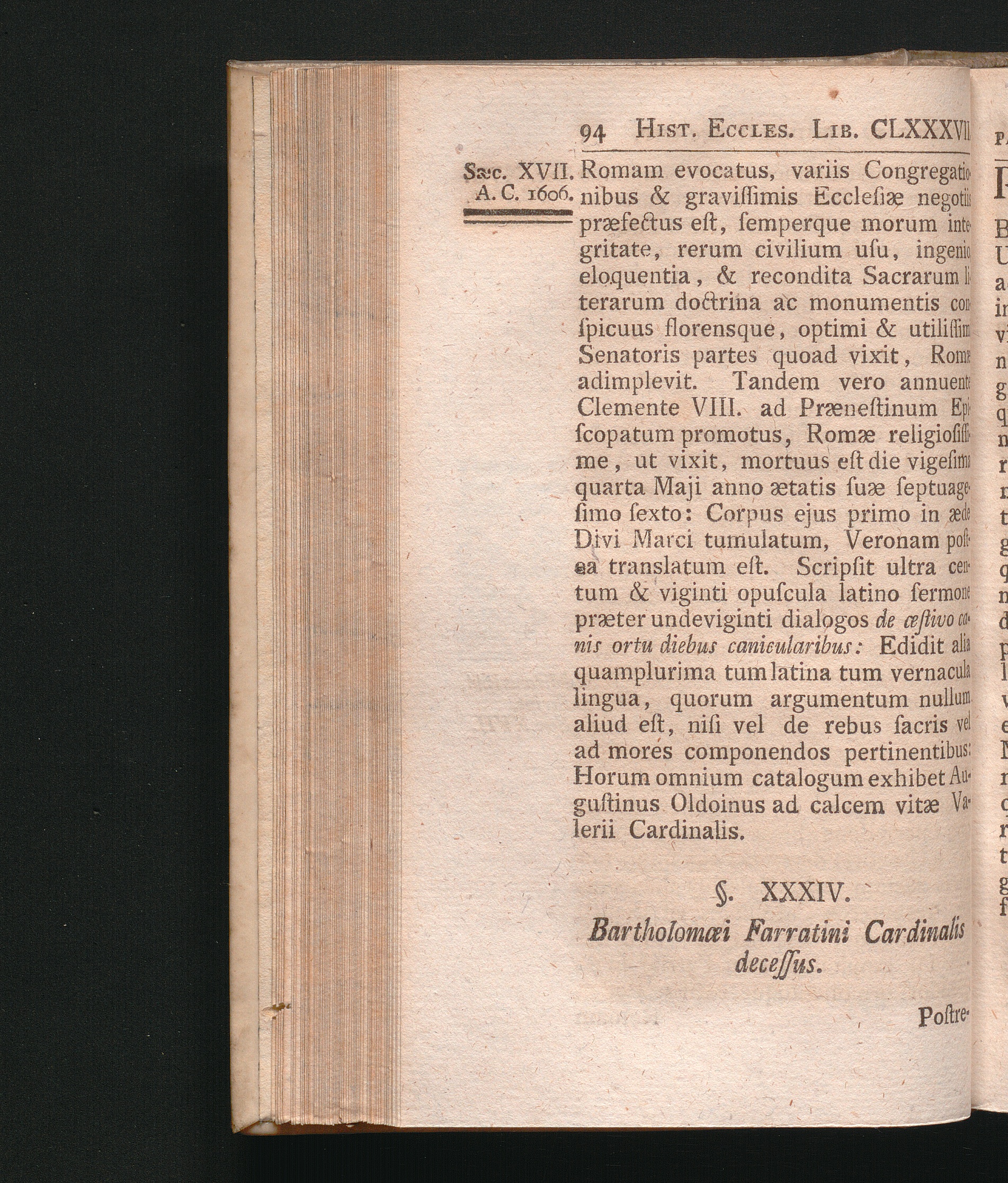 §. 34. Bartholomæi Farratini Cardinalis decessus.