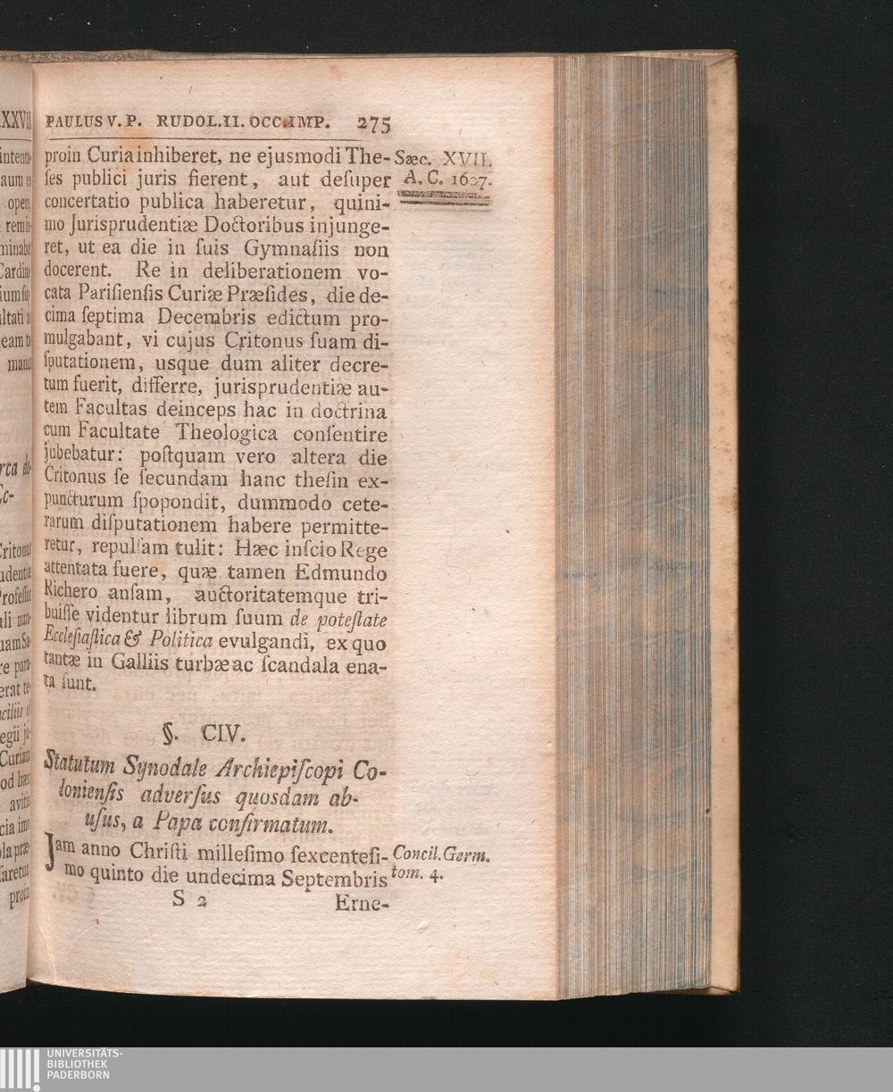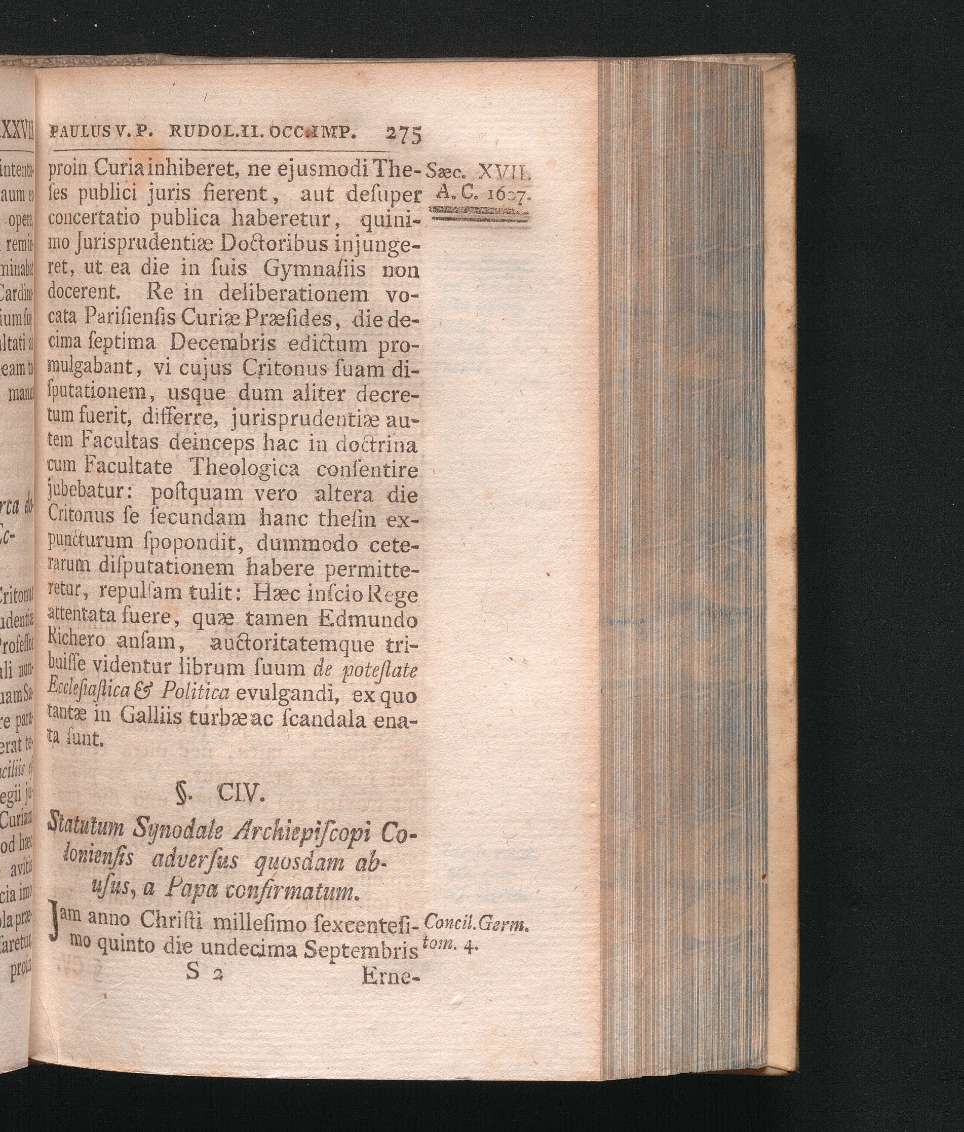 §. 104. Statutum Synodale Archiepiscopi Coloniensis adversus quosdam abusus a Papa[...]