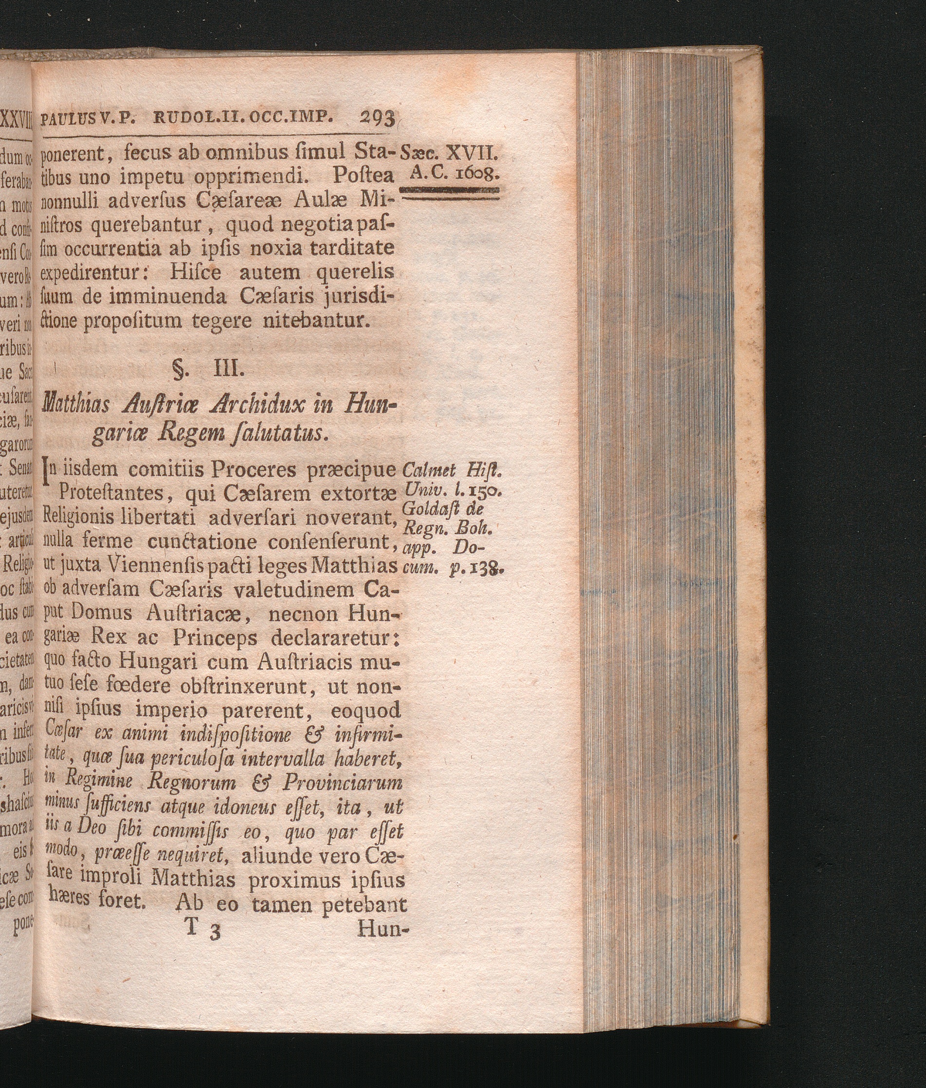 §. 3. Matthias Austriæ Archidux in Hungariæ Regem salutatus.