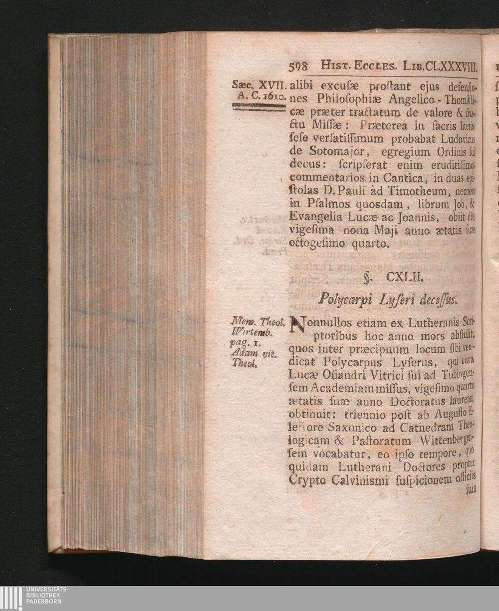 §. 142. Polycarpi Lyseri interitus.
