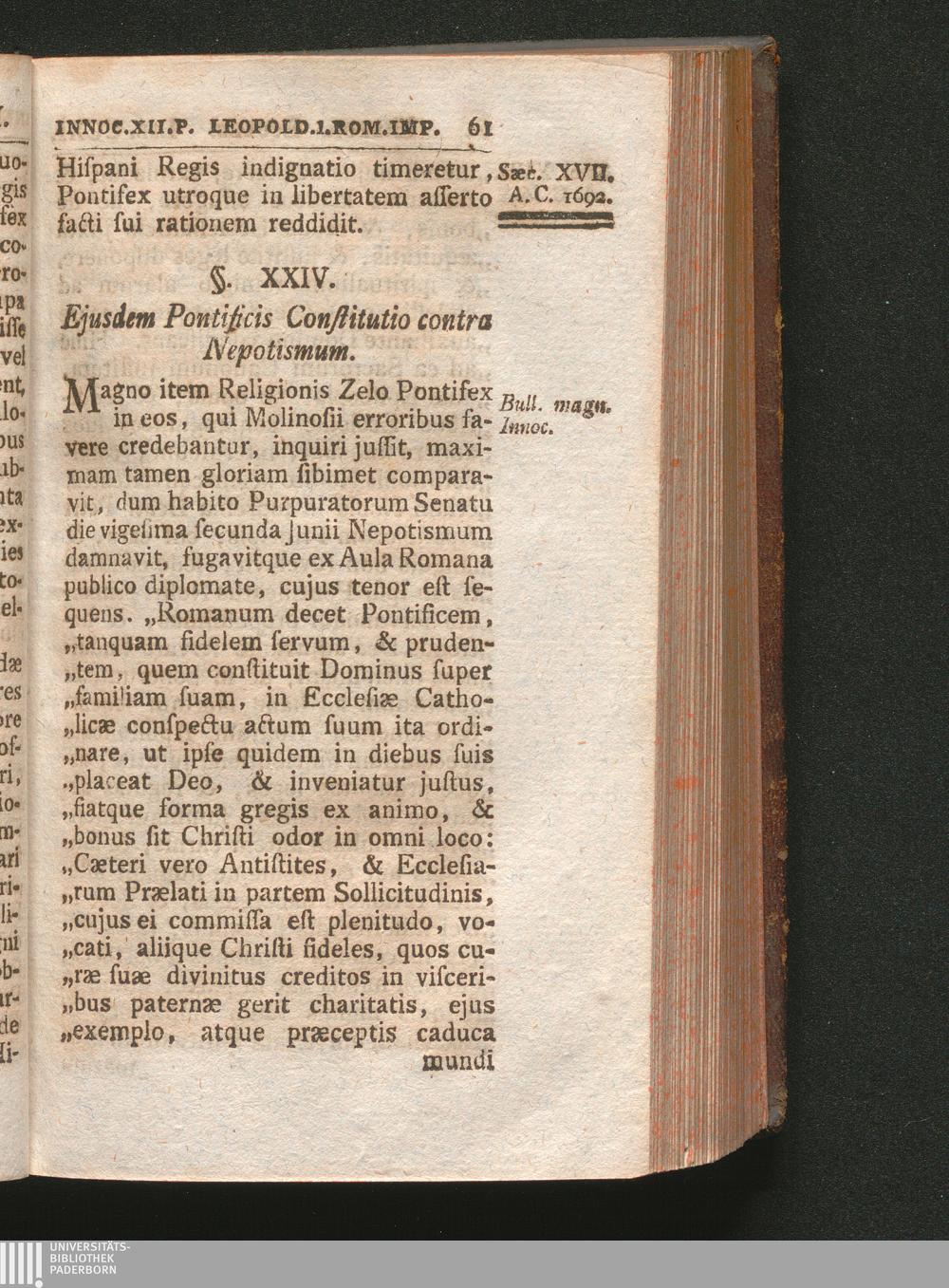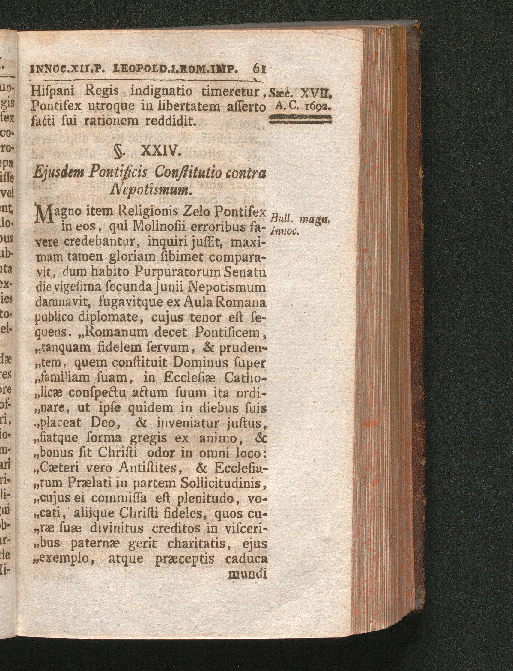 §. 24. Ejusdem Pontificis Constitutio contra Nepotismum.