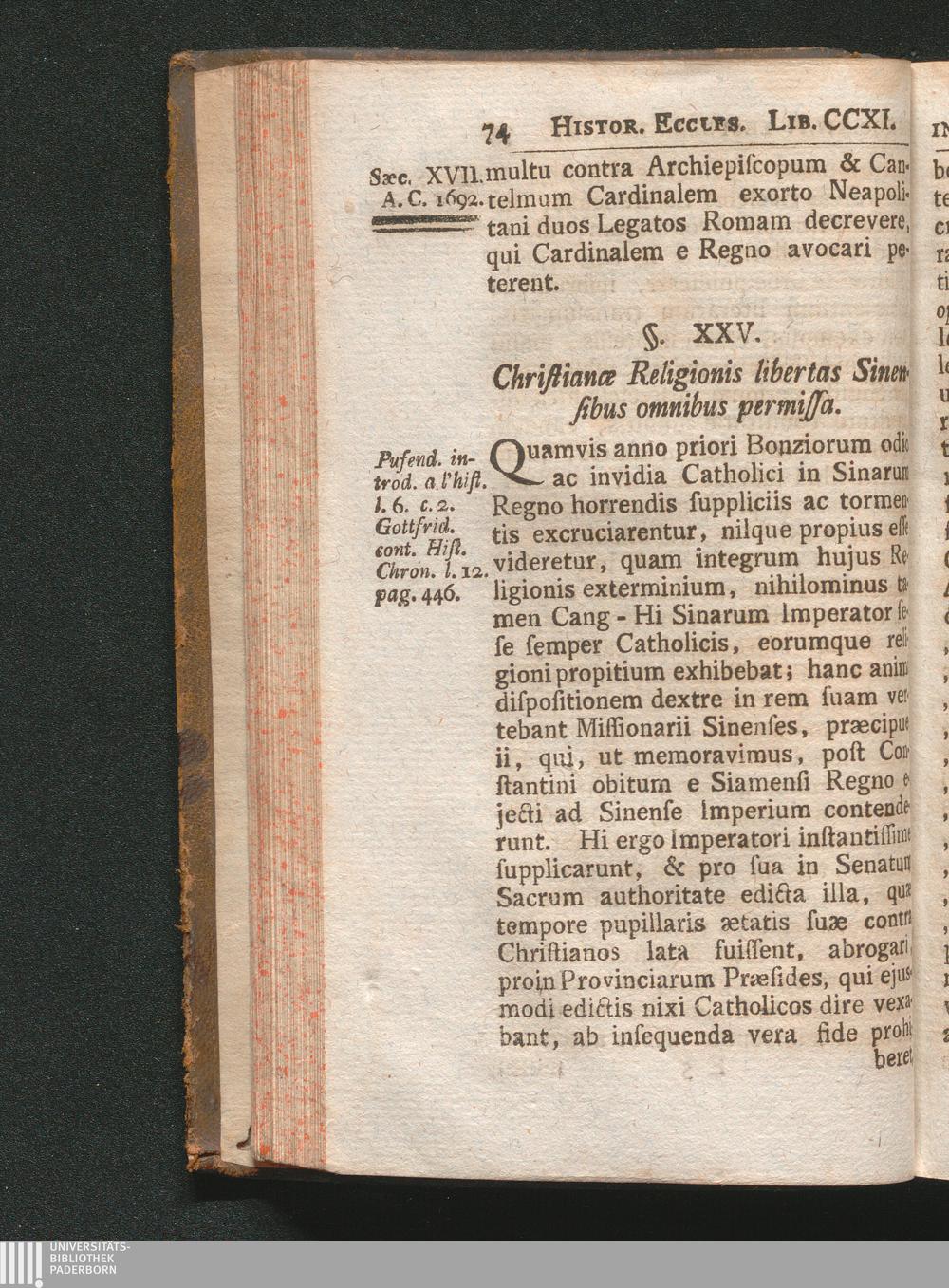 §. 25. Christianæ Religionis libertas Sinensibus cunctis permissa.