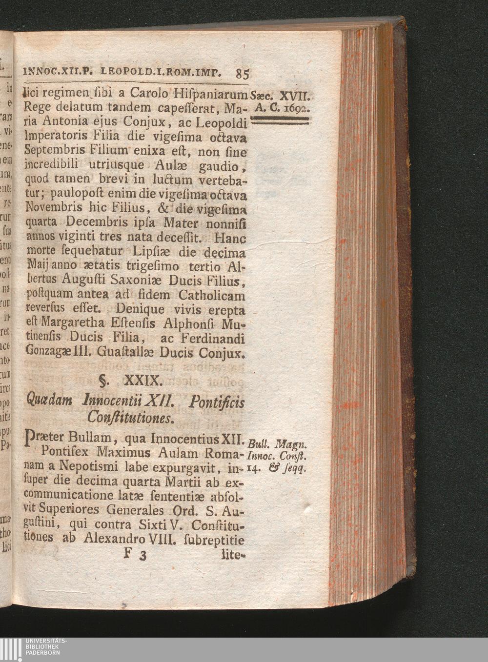 §. 29. Quædam Innocentii XII. Pontificis Constitutiones.