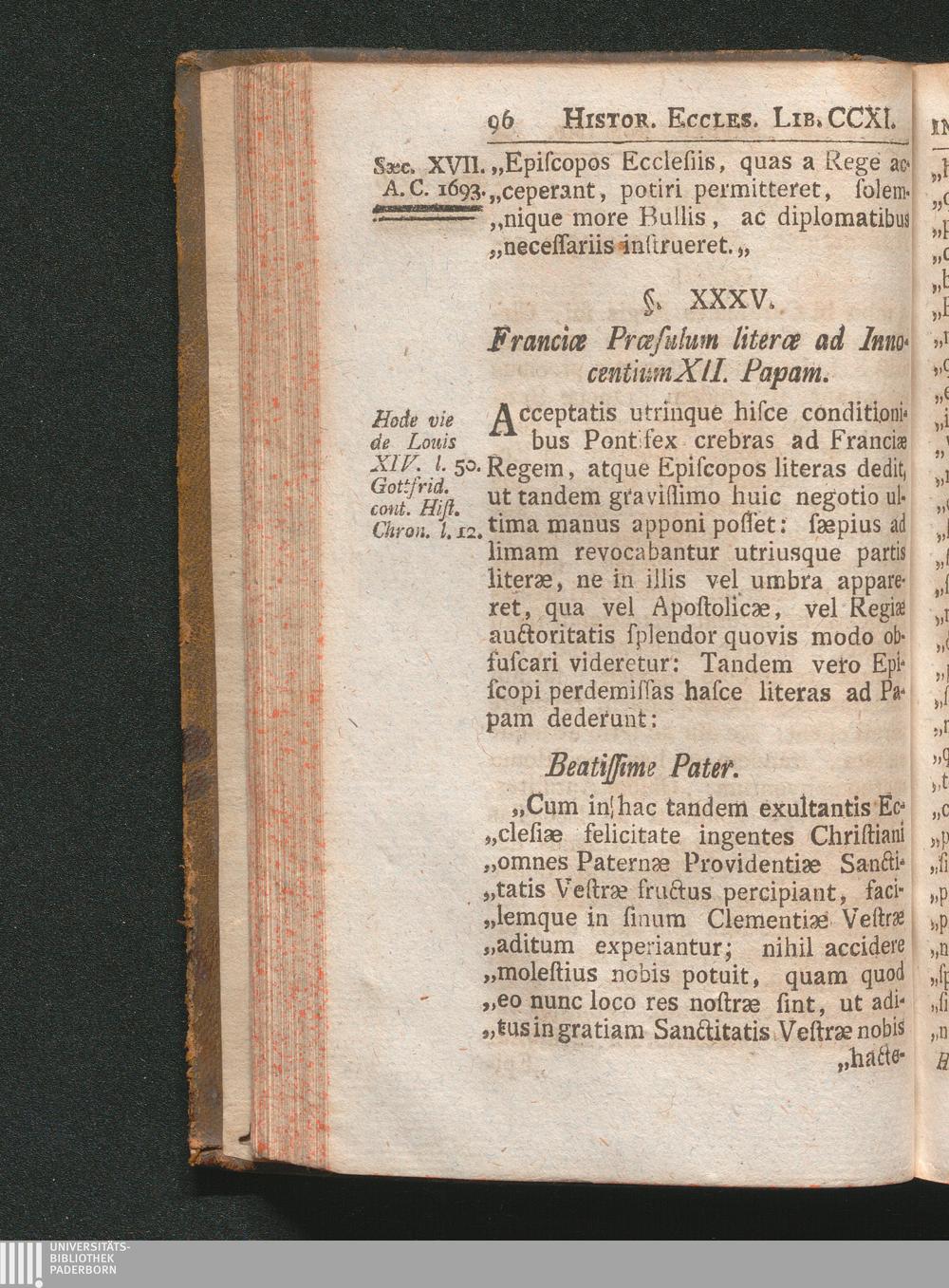 §. 35. Franciæ Præsulum literæ ad Innocentium XII. Papam.