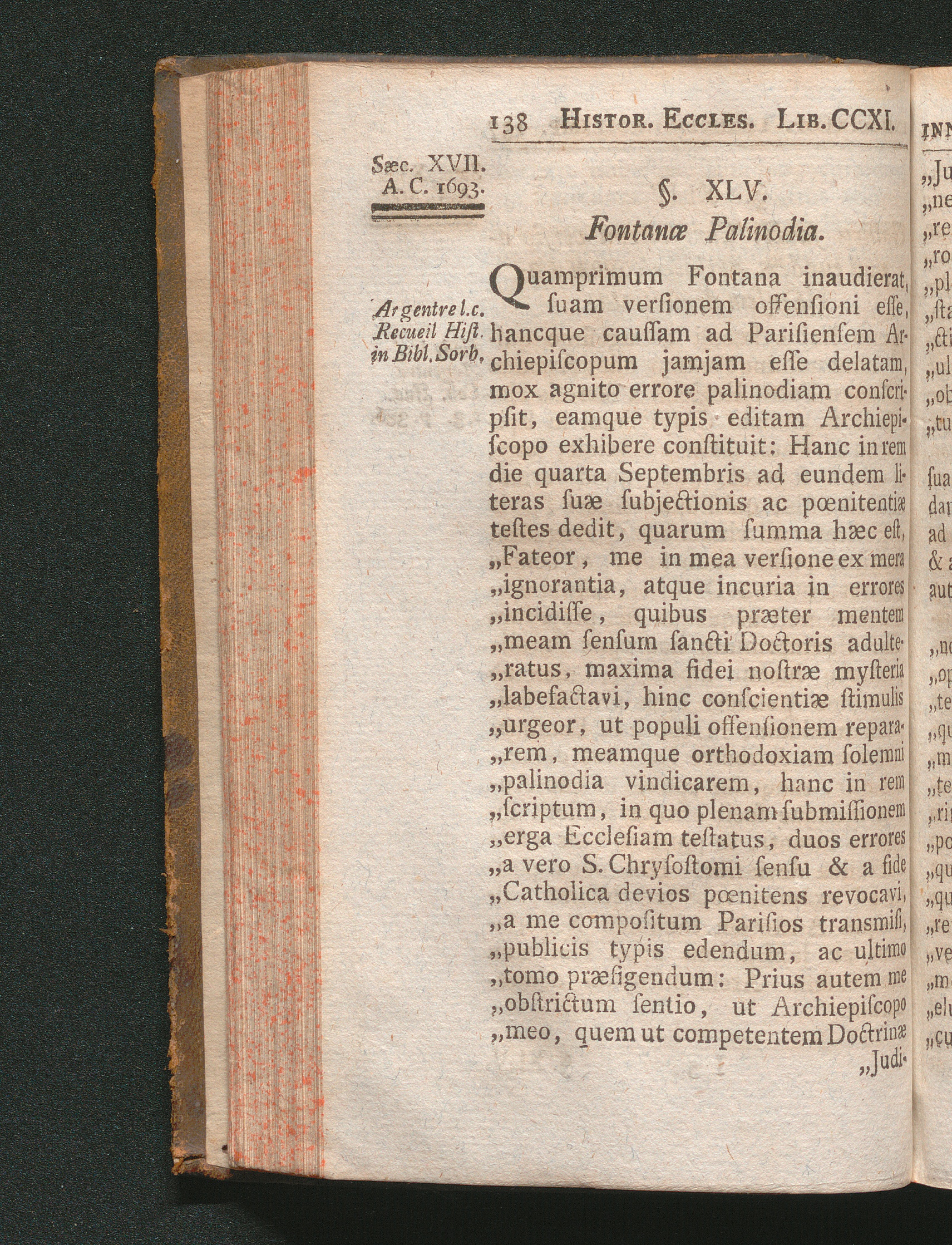 §. 45. Fontanæ ejusdem Versoris Palinodia.