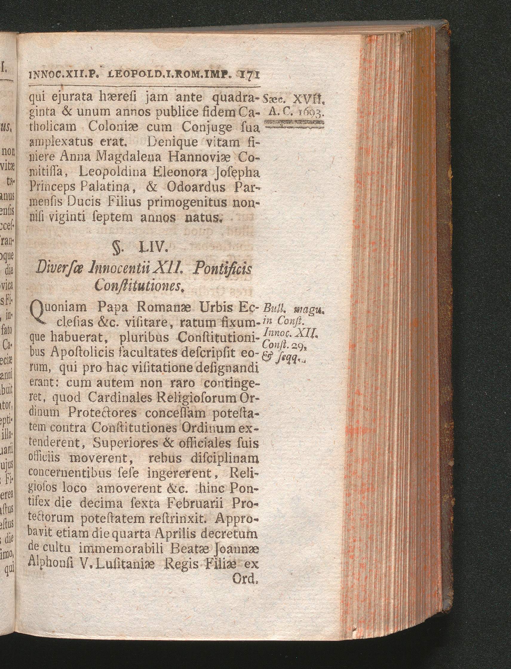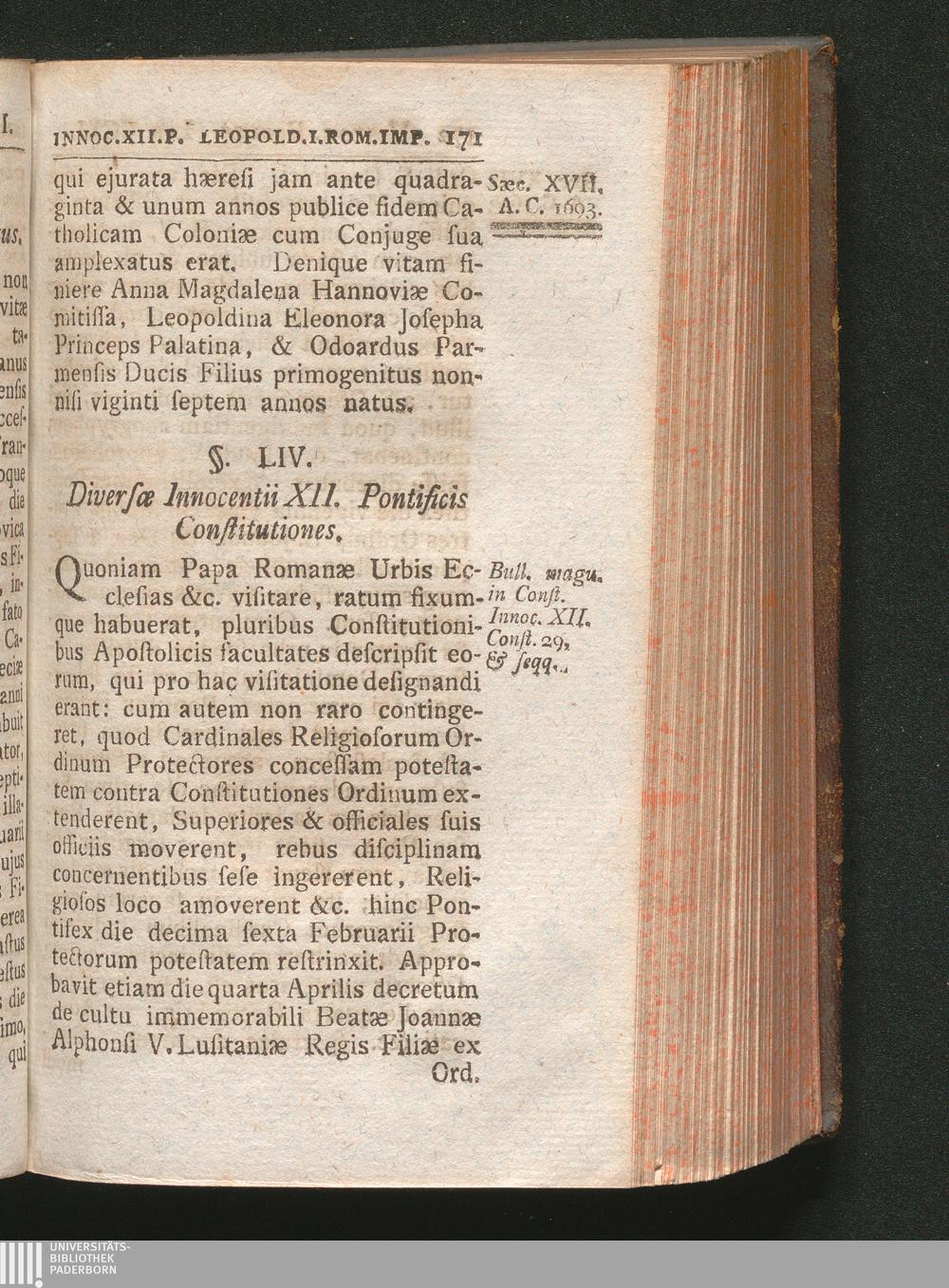 §. 54. Diversæ Innocentii XII. Pontificis Constitutiones.