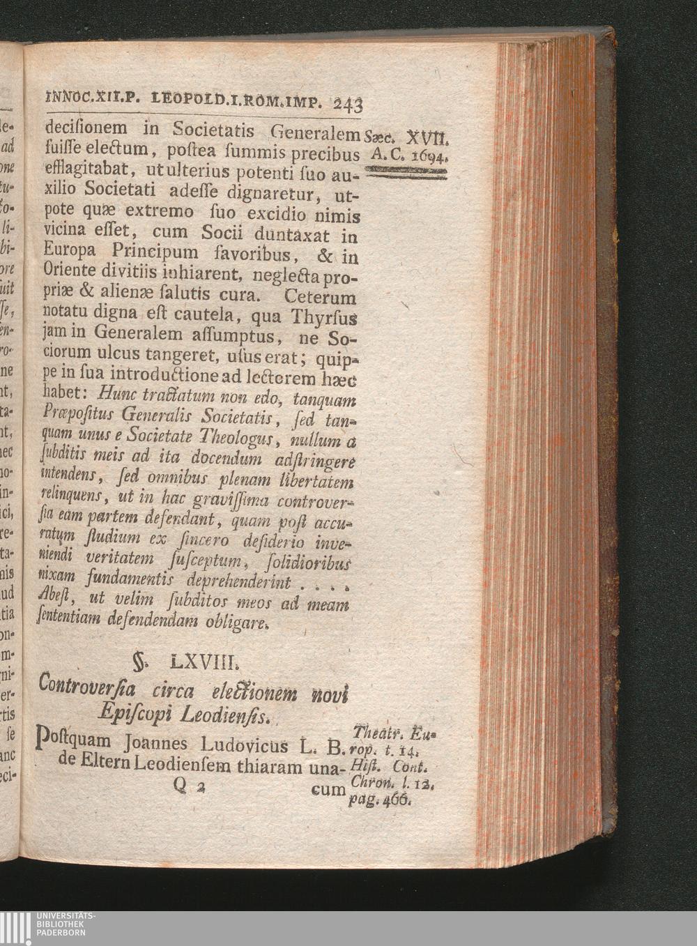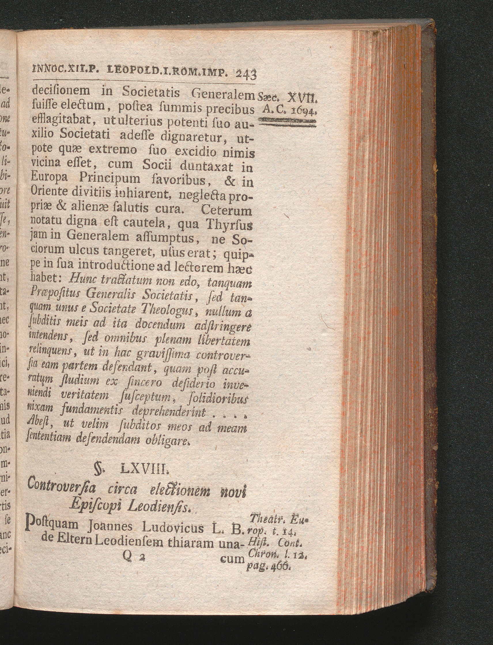 §. 68. Controversia circa ejectionem novi Episcopi Leodiensis.
