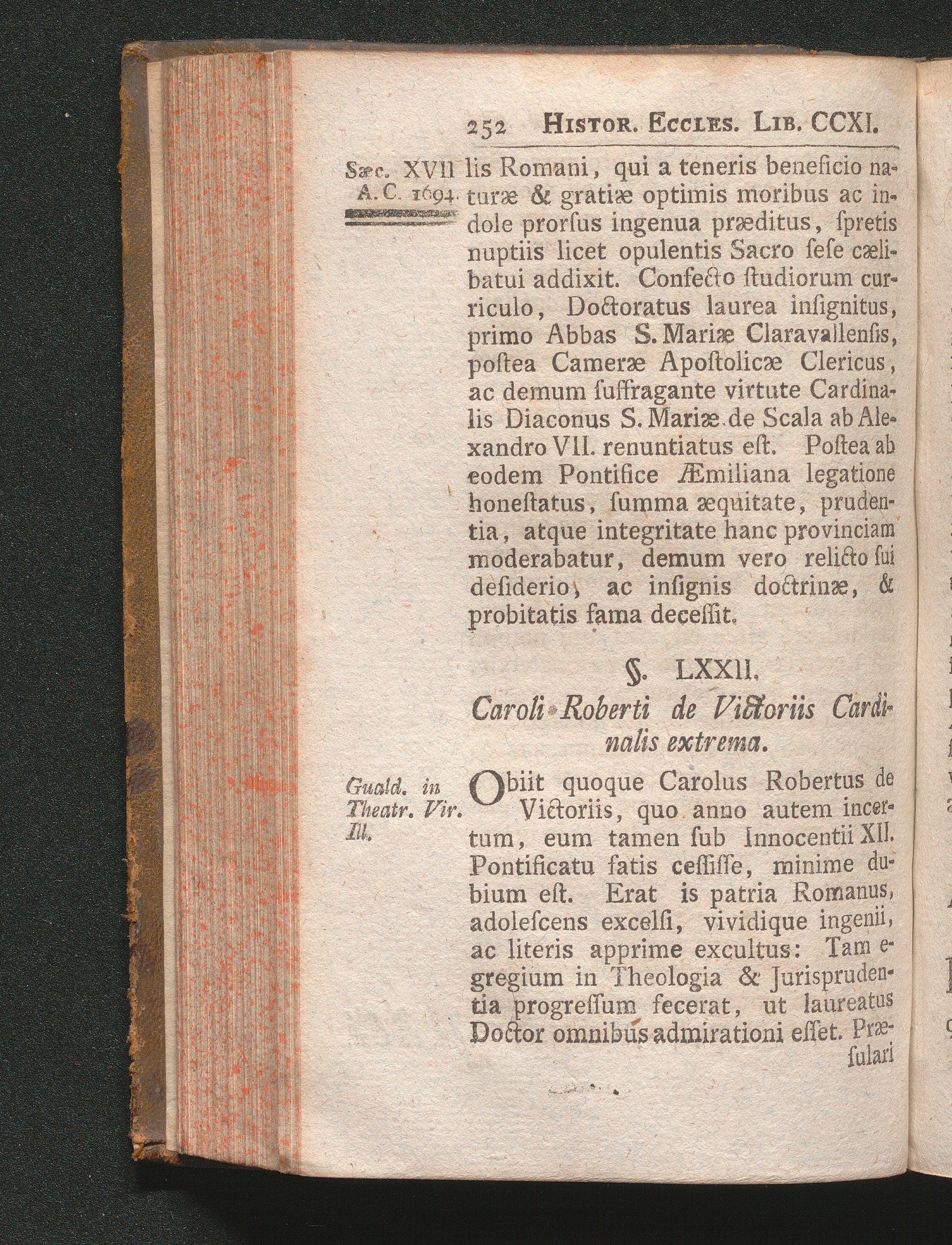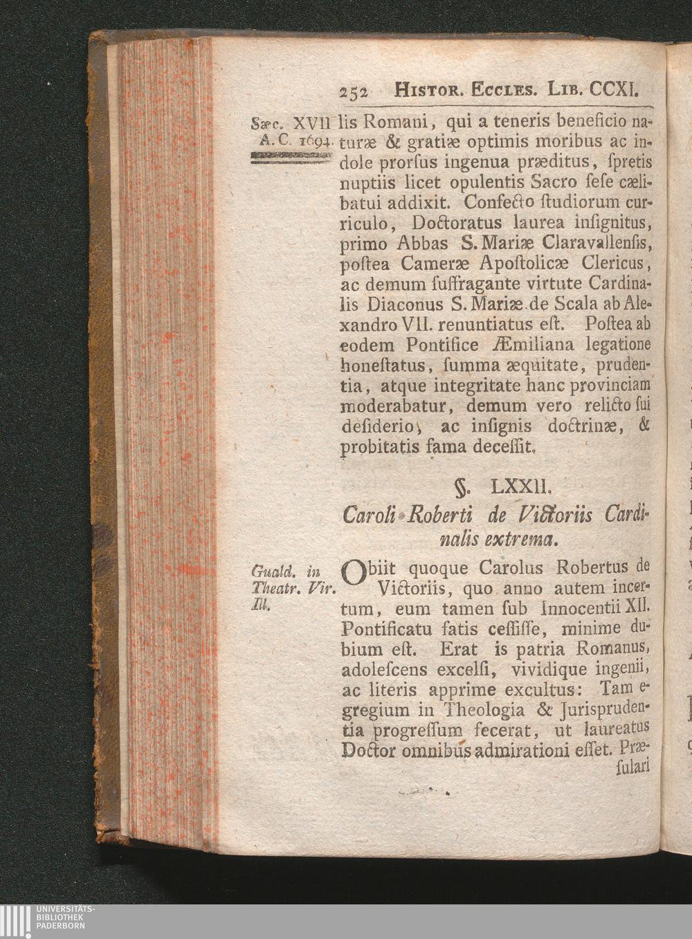 §. 72. Caroli Roberti de Victoriis Cardinalis extrema.
