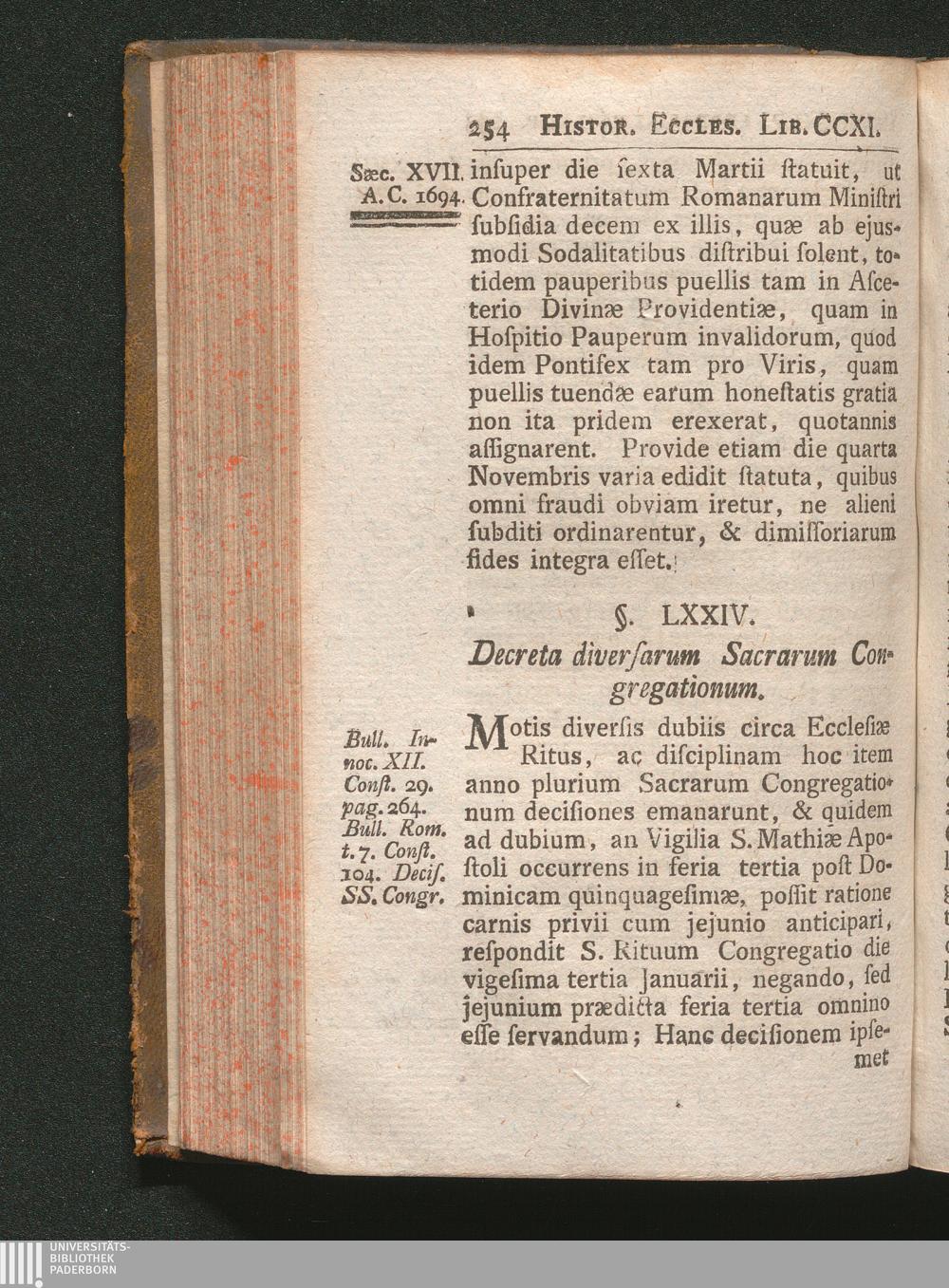 §. 74. Decreta diversarum Sacrarum Congregationem.