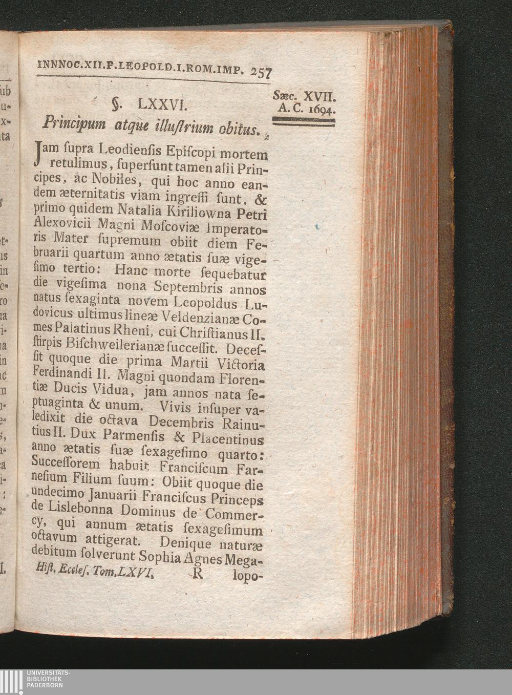 §. 76. Principum atque Illustrium obitus.