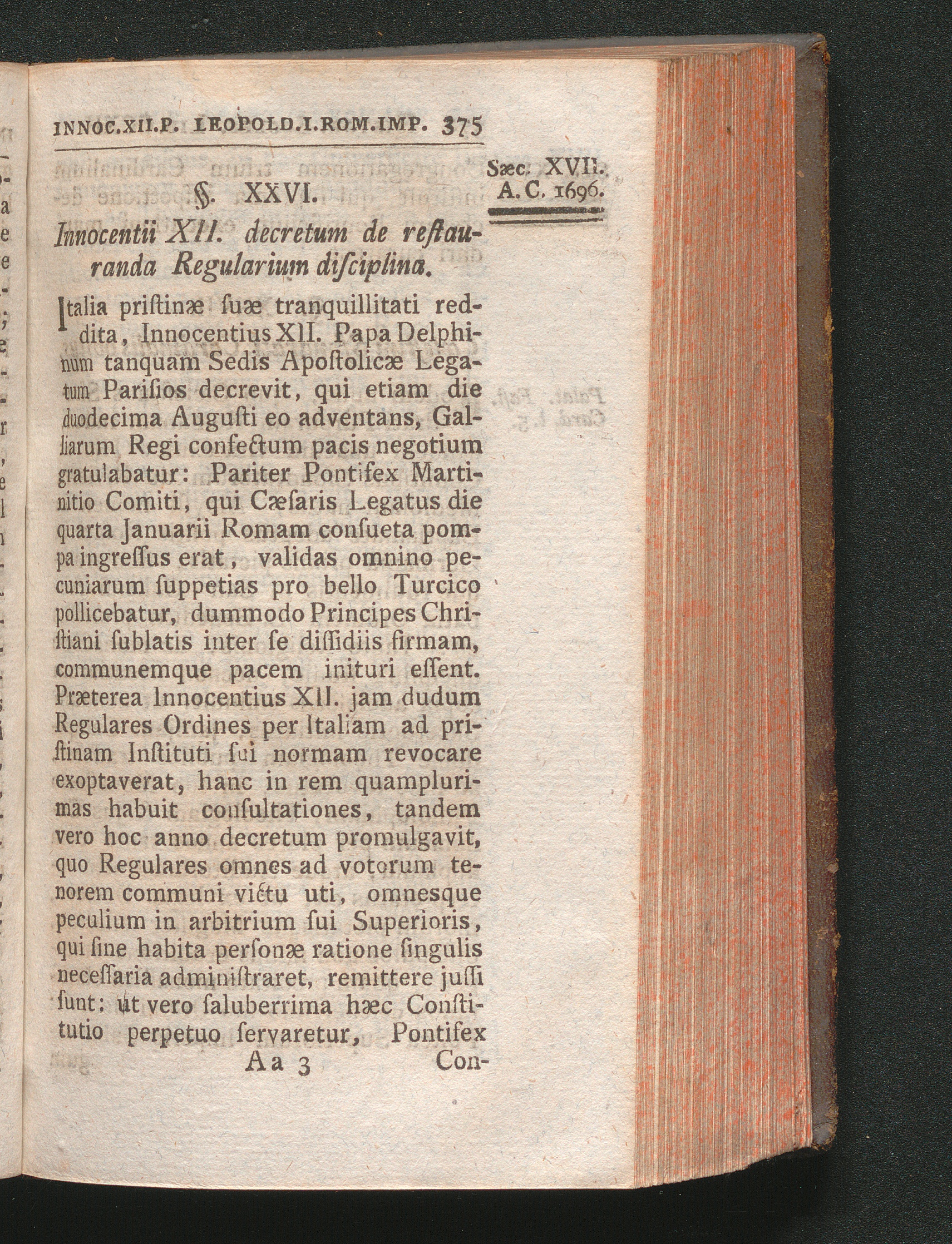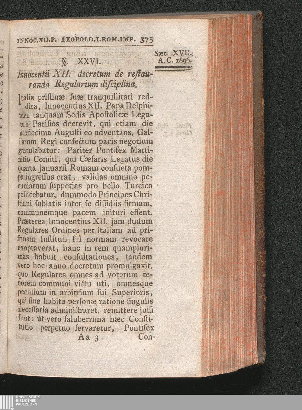§. 26. Innocentii XII. decretum de restauranda Regularium disciplina.