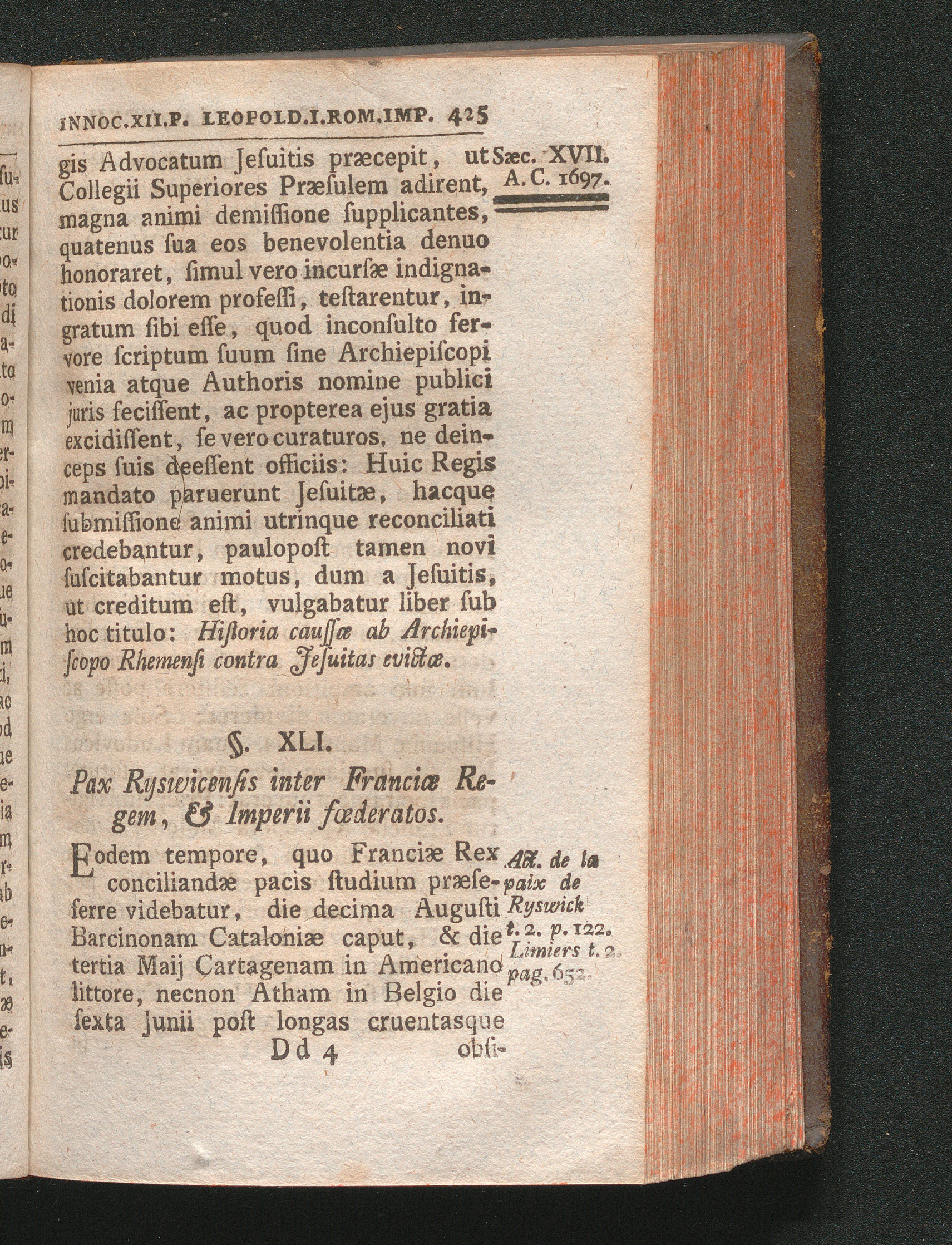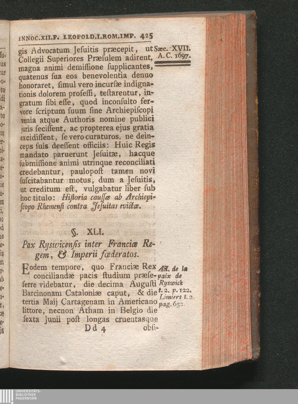§. 41. Pax Ryswicensis inter Franciæ Regem & Imperii fœderatos.