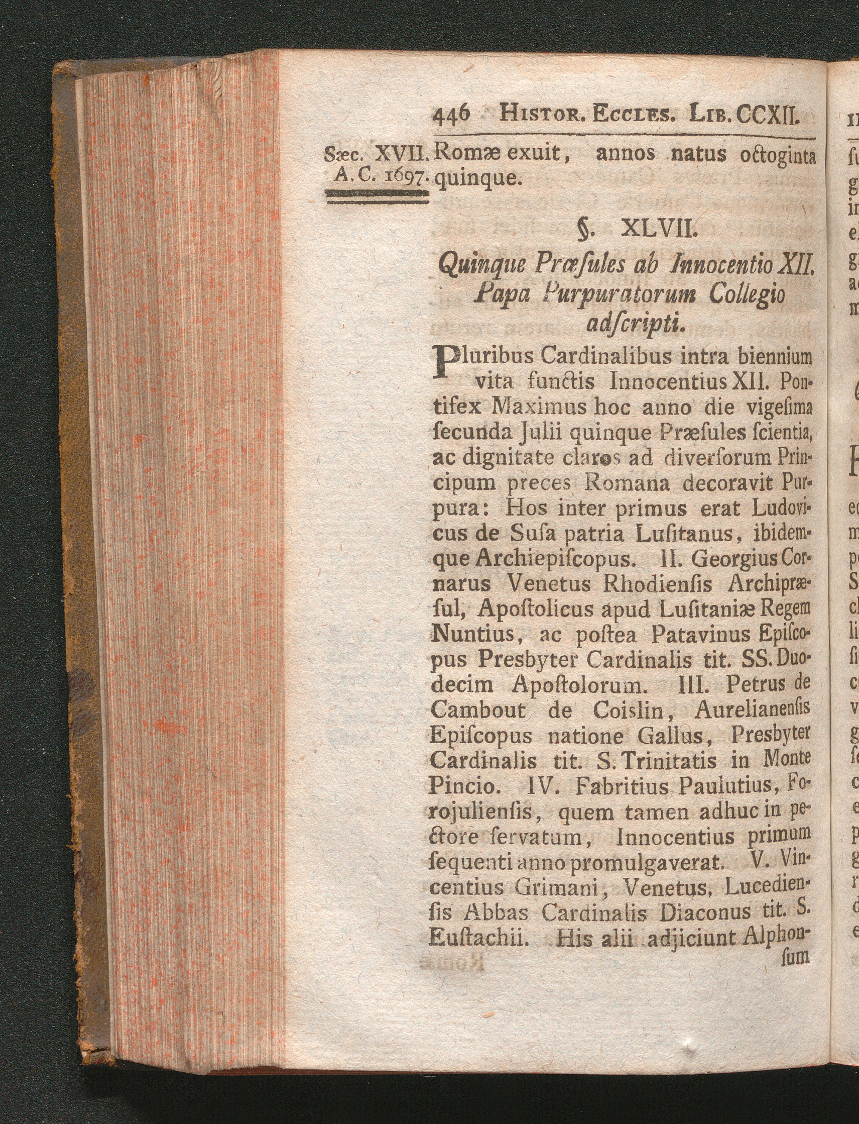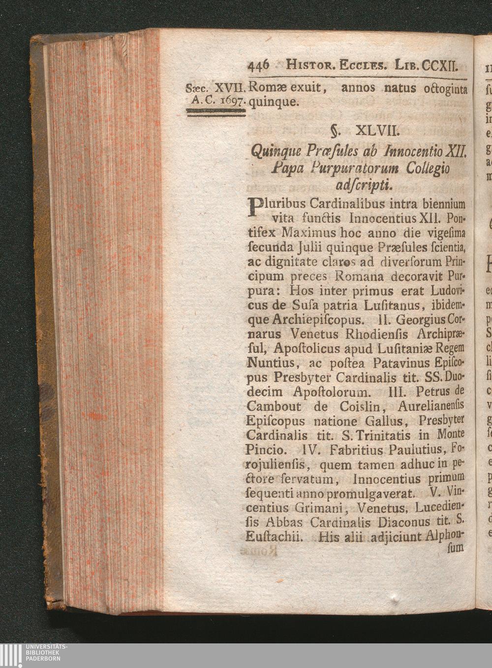 §. 47. Quinque Præsules ab Innocentio XII. Papa Purpuratorum Collegio adscripti.