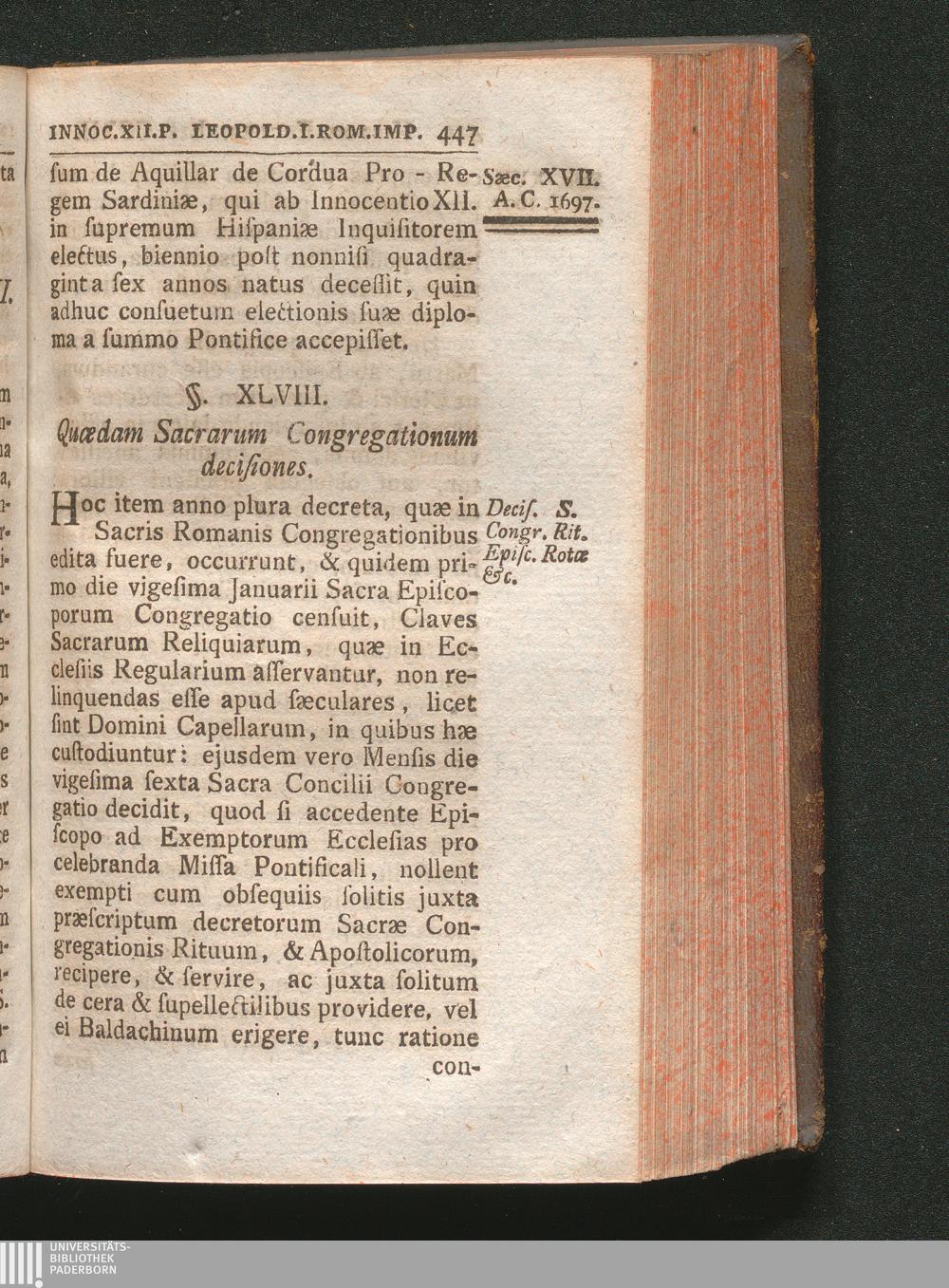 §. 48. Quædam Sacrarum Congregationum decisiones.