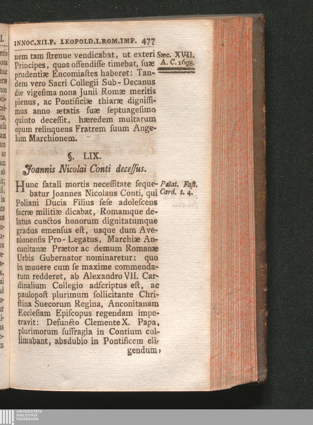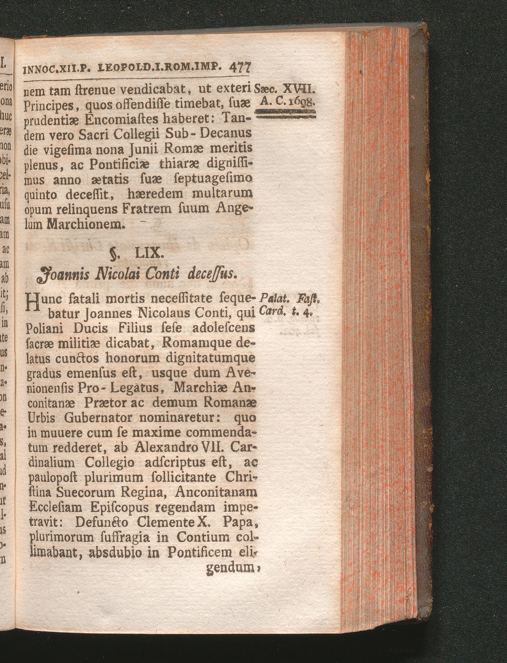 §. 59. Joannis Nicolai de Comitibus Cardinalis decessus.