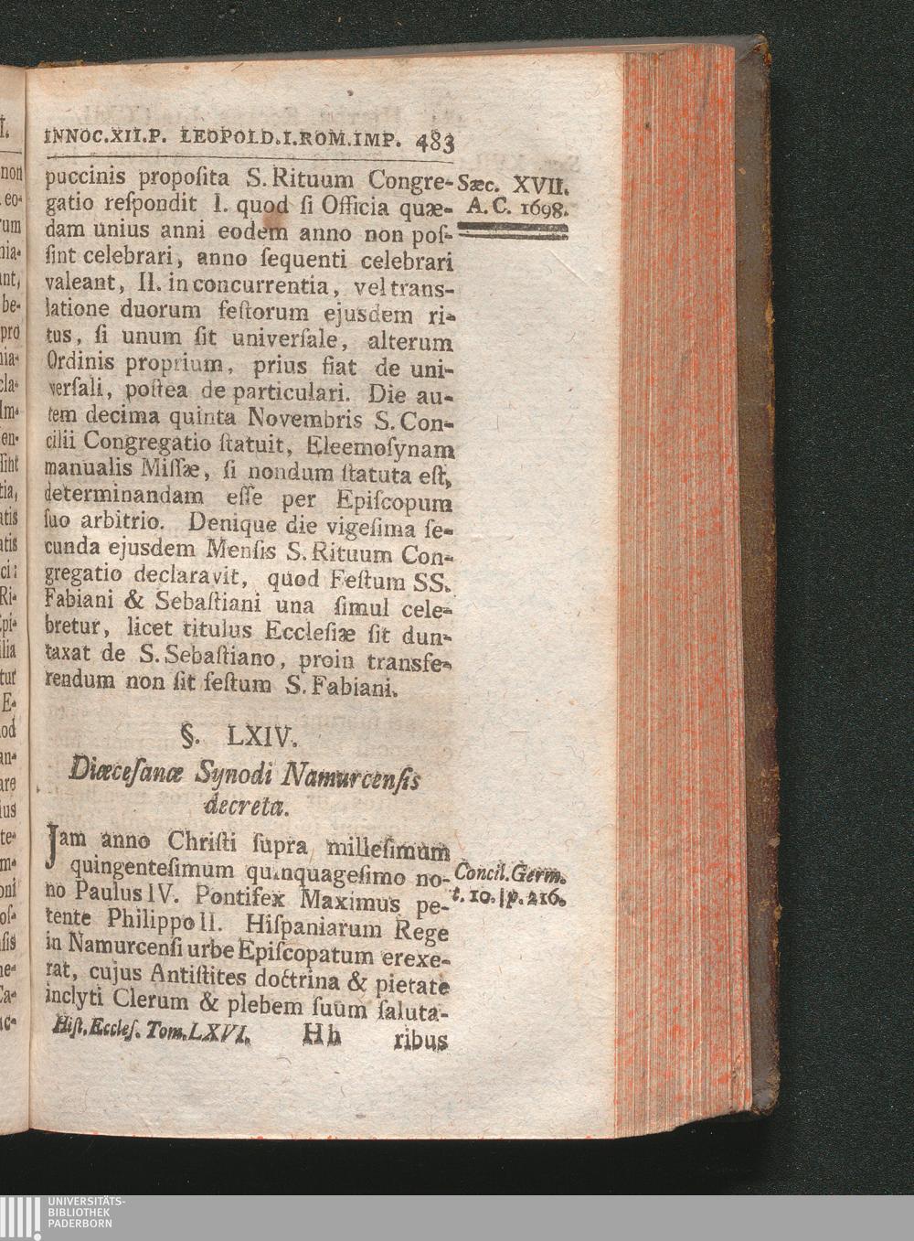 §. 64. Diœcesanæ Synodi Namurcensis decreta.