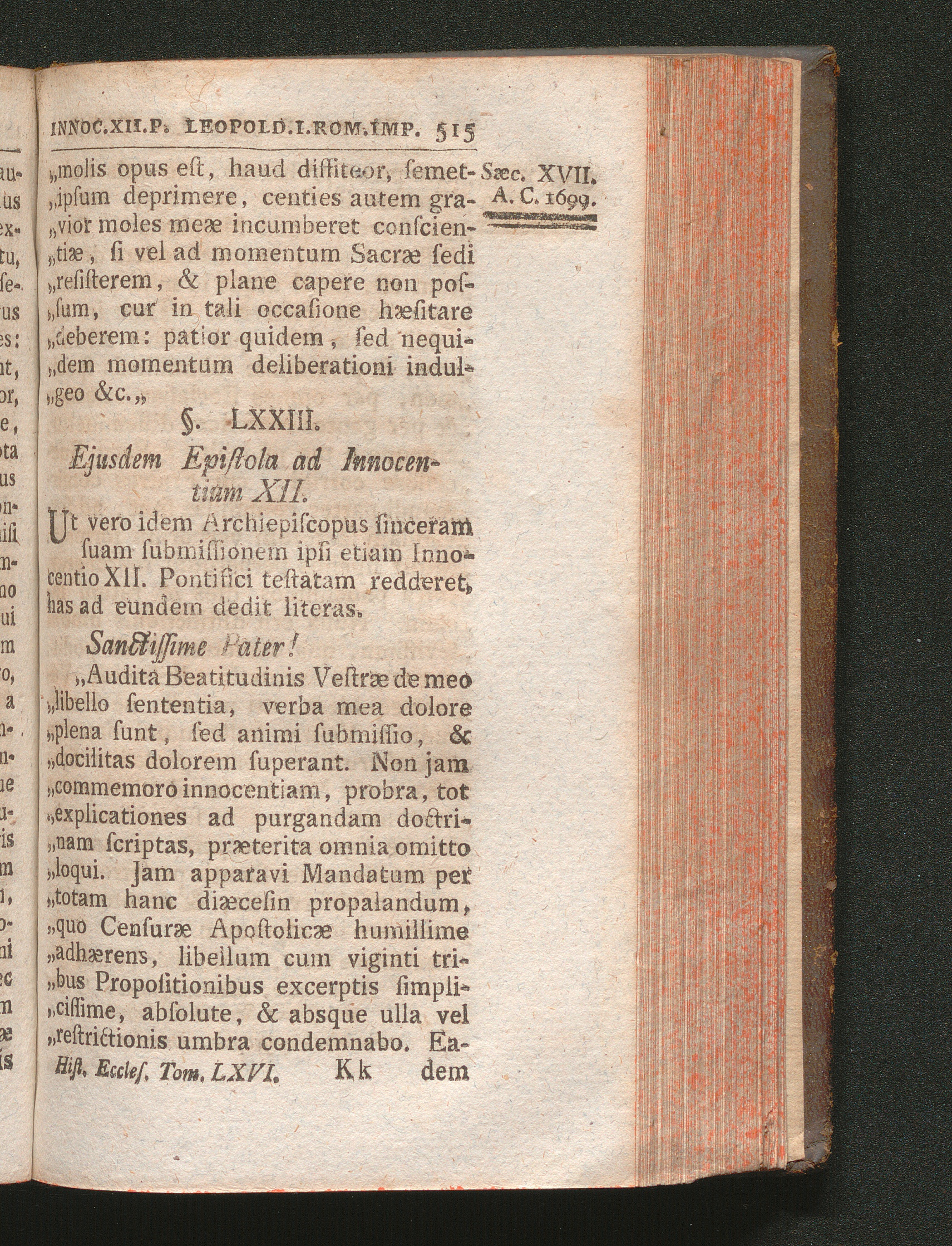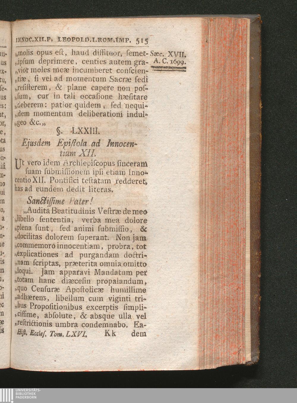 §. 73. Ejusdem epistola ad Innocentium XII. Papam.