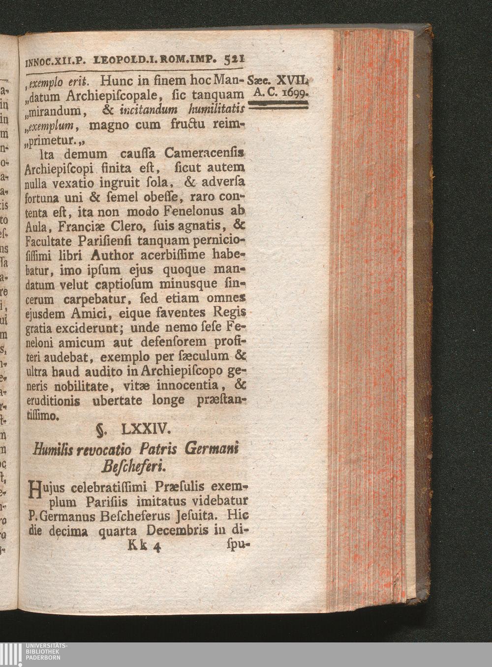 §. 74. Humilis revocatio Patris Germani Bescheferi Jesuitæ.