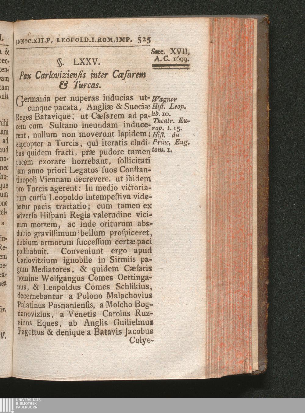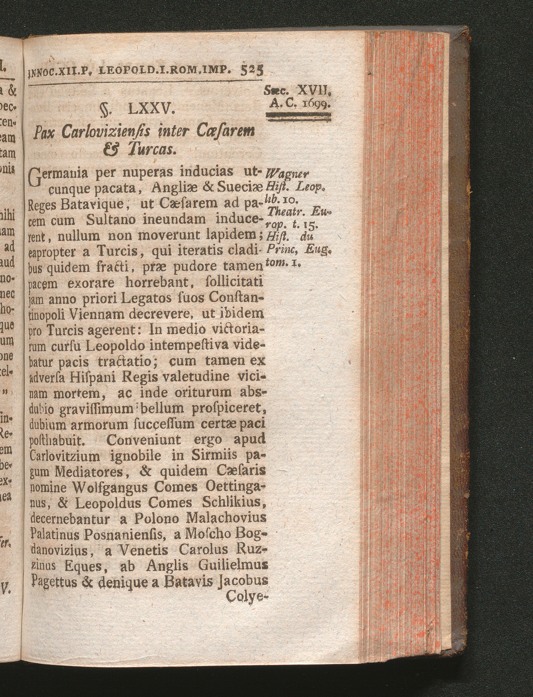§. 75. Pax Carloviziensis inter Cæsarem & Turcas.