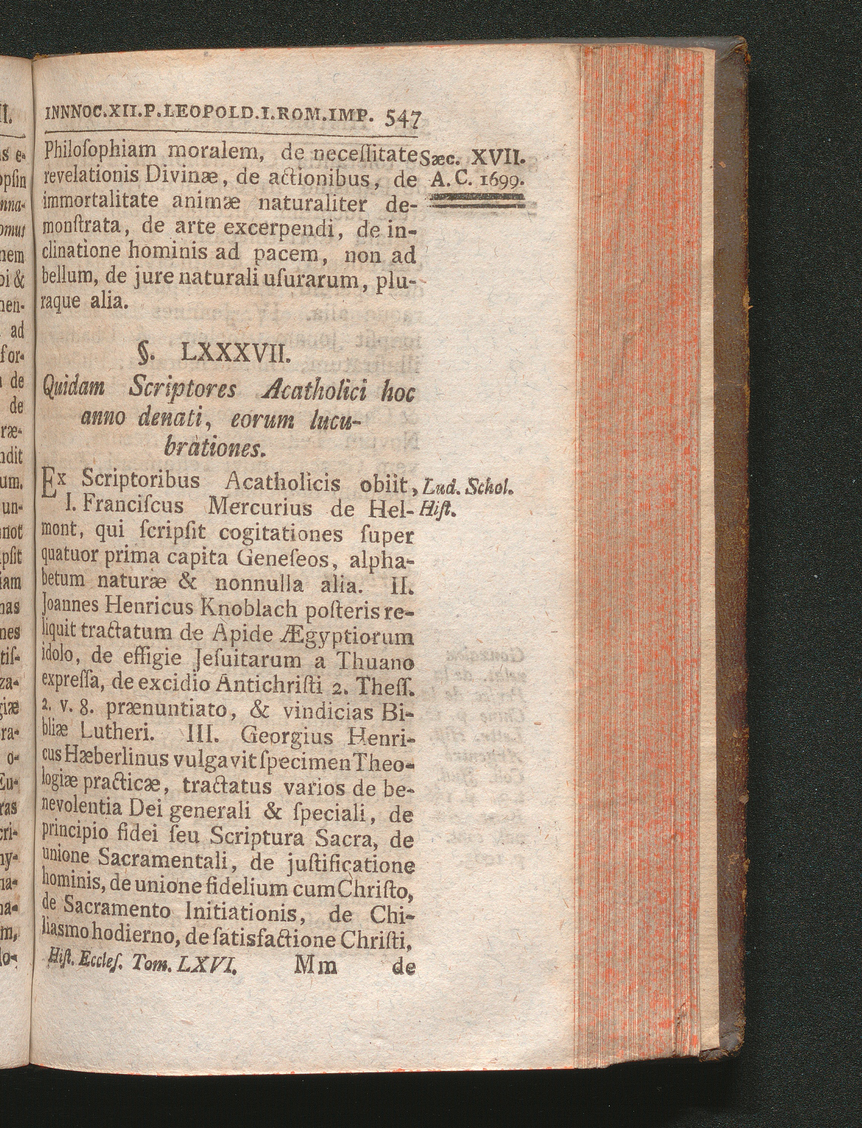 §. 87. Quidam Scriptores Acatholici hoc anno denati, eorum lucubrationes.