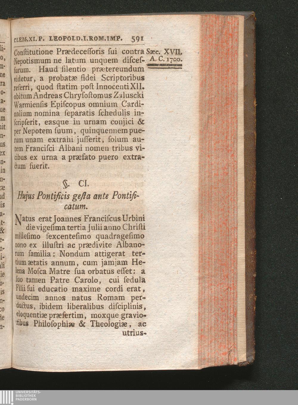 Ab anno Christi 1691. usque ad annum 1701