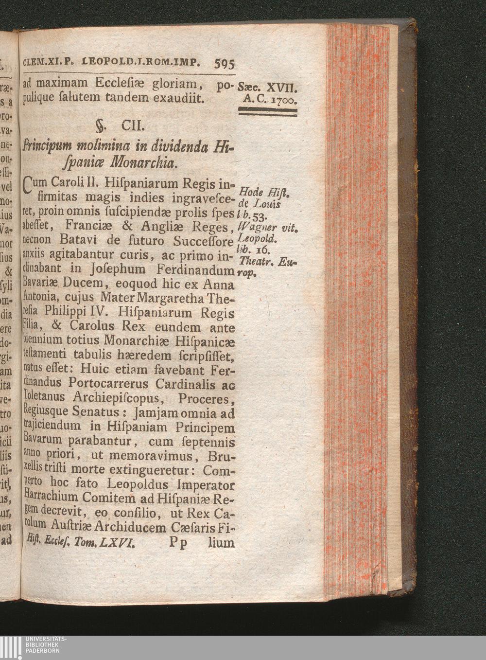 Continuationis Tomus Quadragesimus Secundus, Seu In Ordine Tomus LXVI (1781) Ab anno Christi 1691. usque ad annum 1701