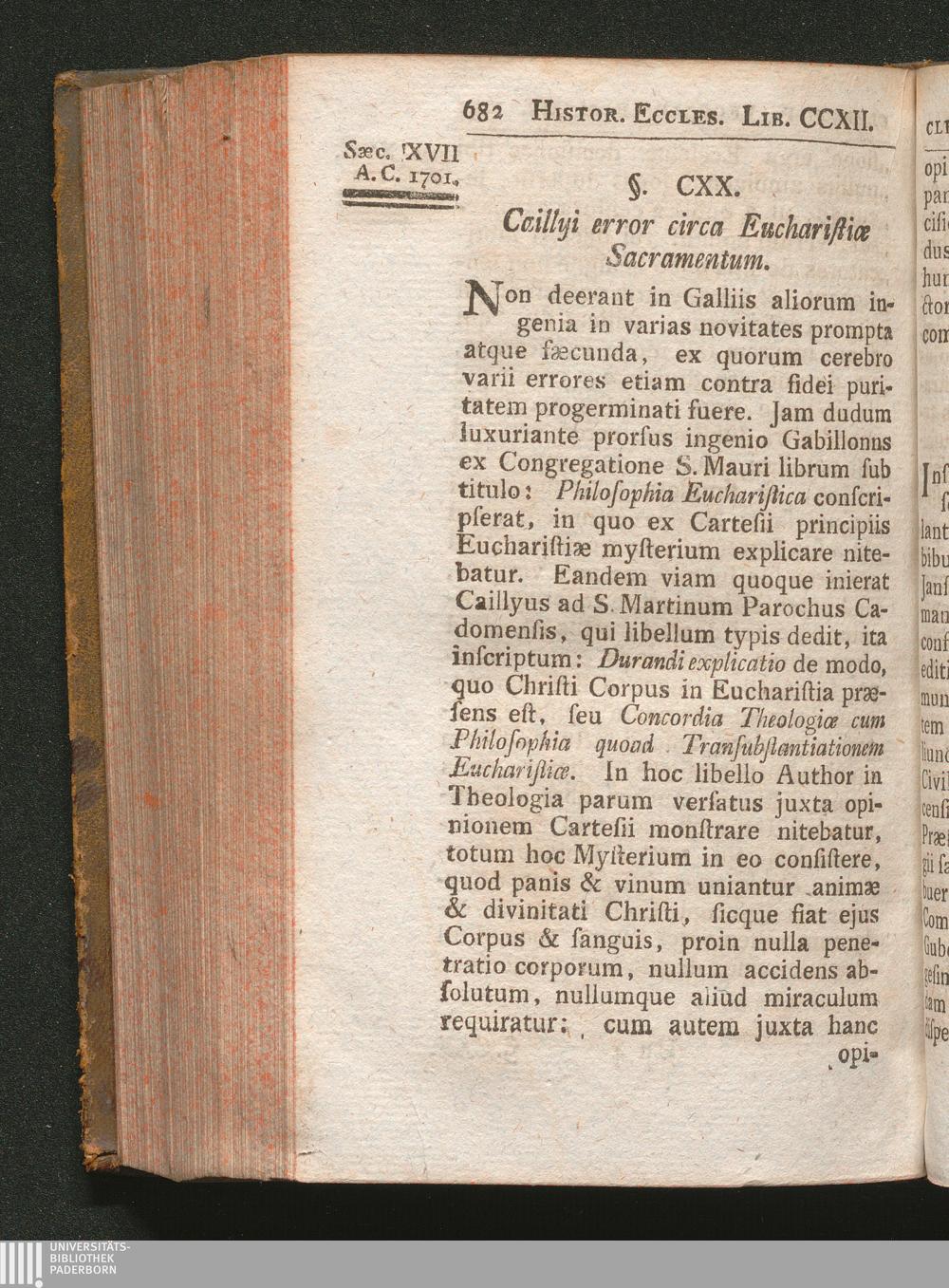 §. 120. Caillyi error circa Eucharistiæ Sacramentum.