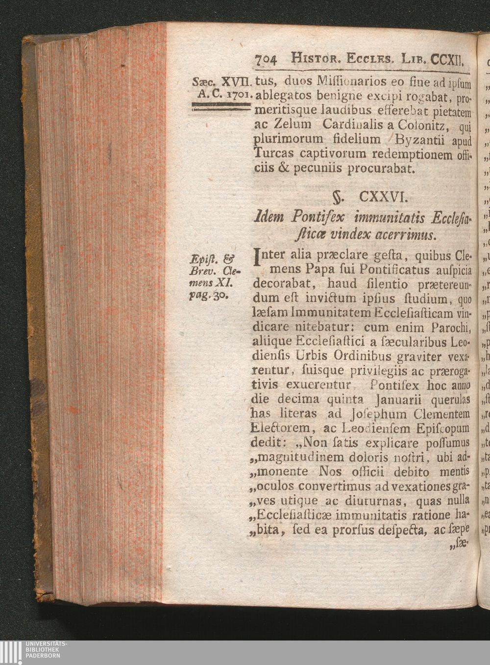 §. 126. Idem Pontifex immunitatis Ecclesiasticæ vindex acerrimus.