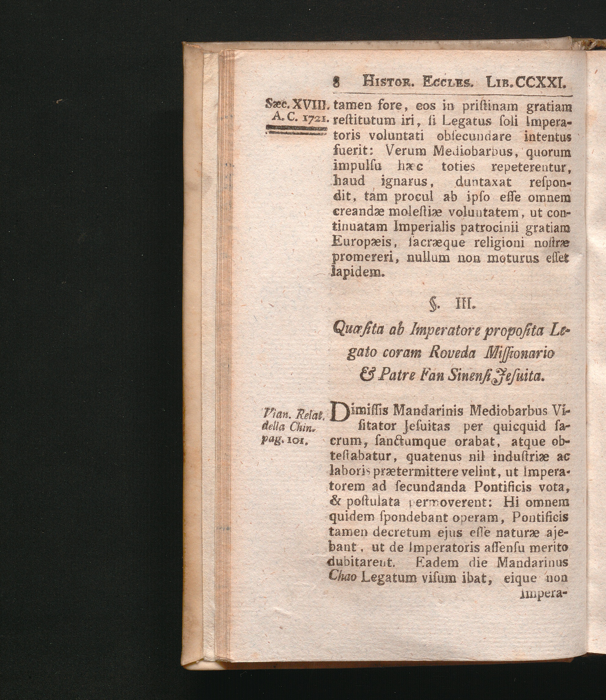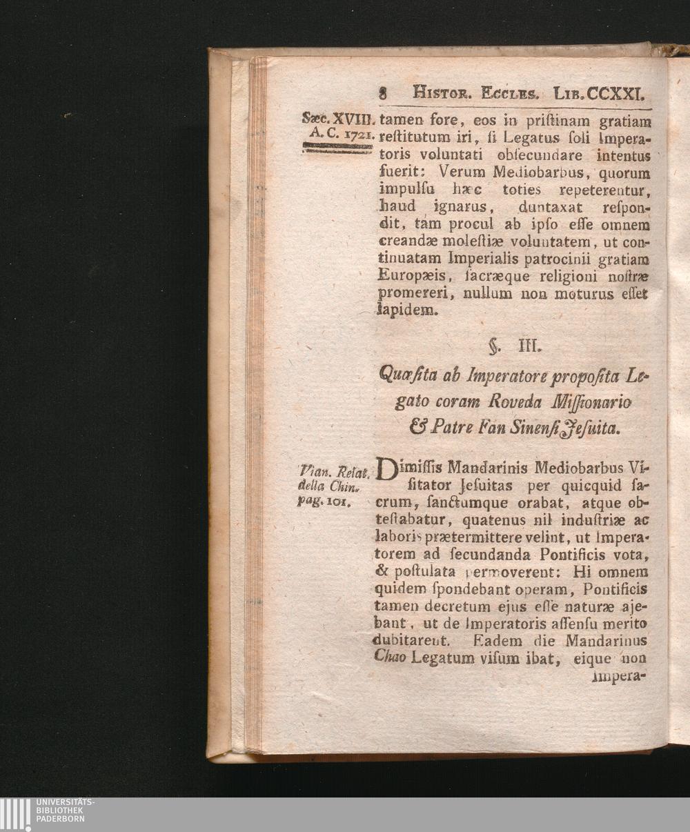 §. 3. Quæsita Legato ab Imperatore proposita præsentibus Roveda Missionario & Patre[...]