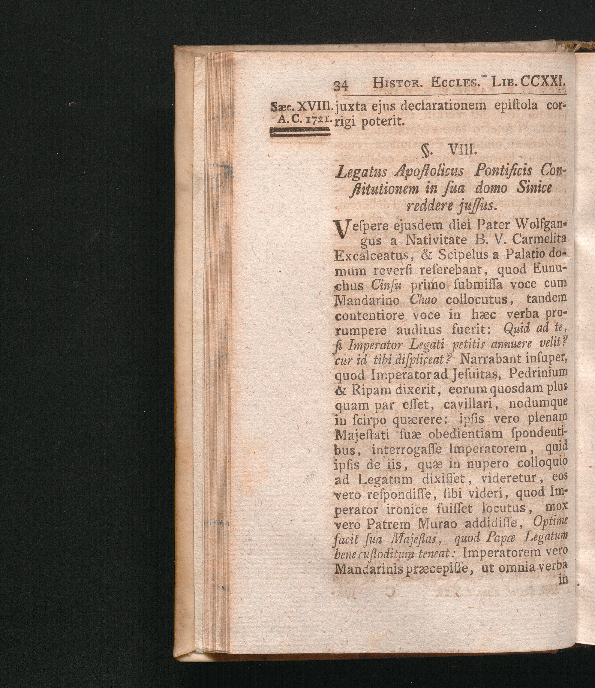 §. 8. Legatus Apostolicus Pontificis Constitutionem in sua Domo Sinice reddere j[...]
