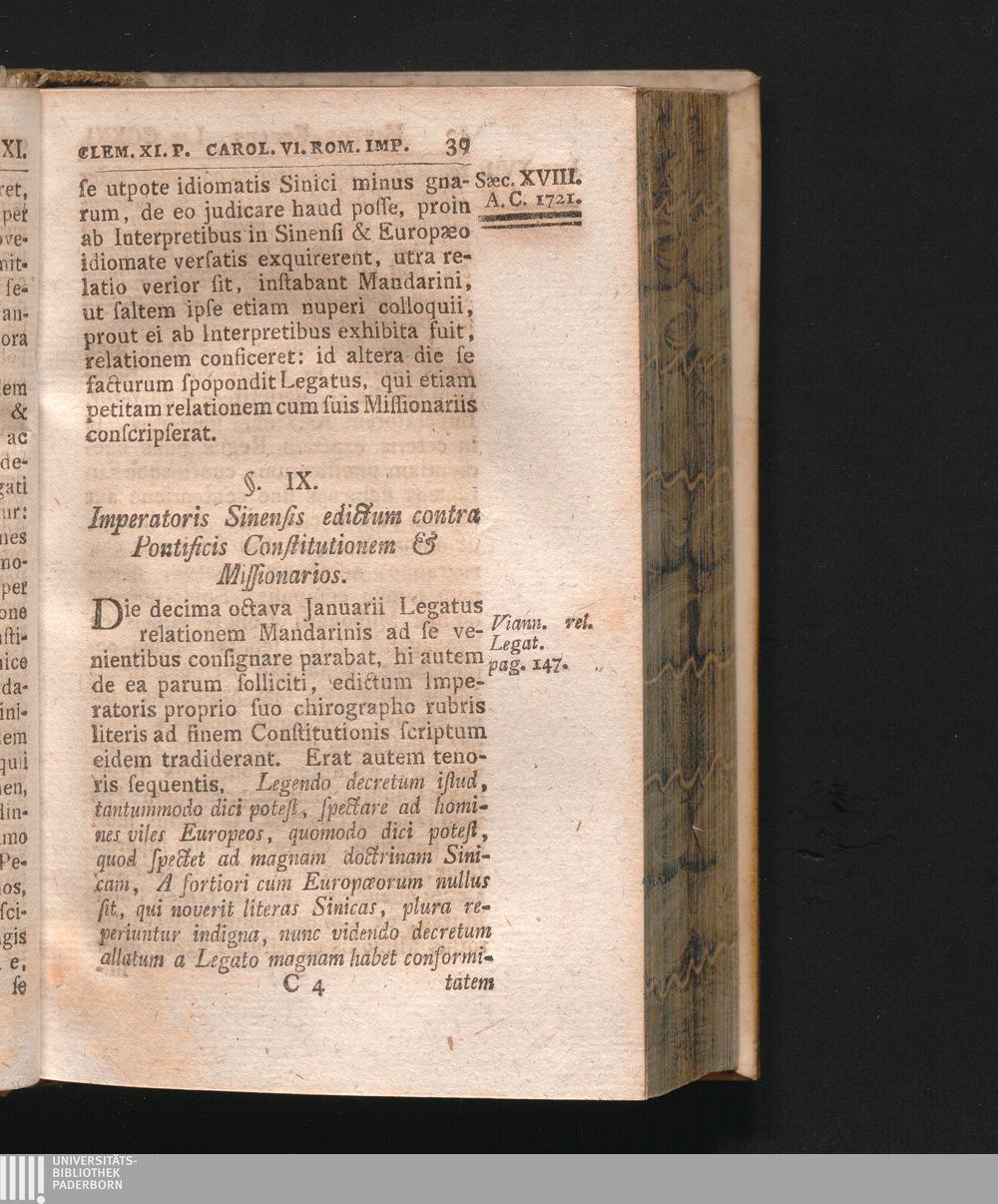 §. 9. Imperatoris Sinensis edictum contra Pontificis Constitutionem & Missionari[...]