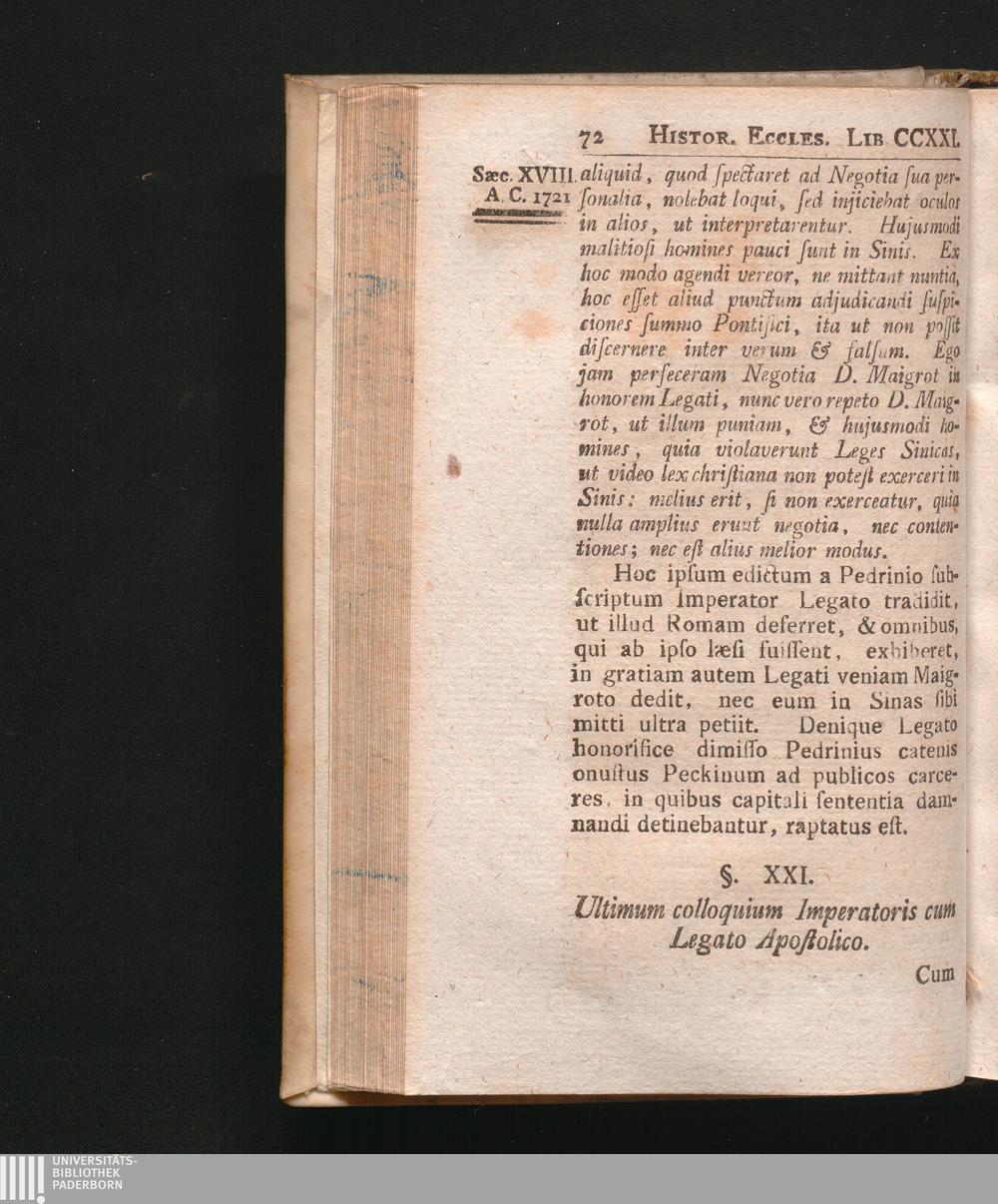 Ab anno Christi 1721. usque ad annum 1724