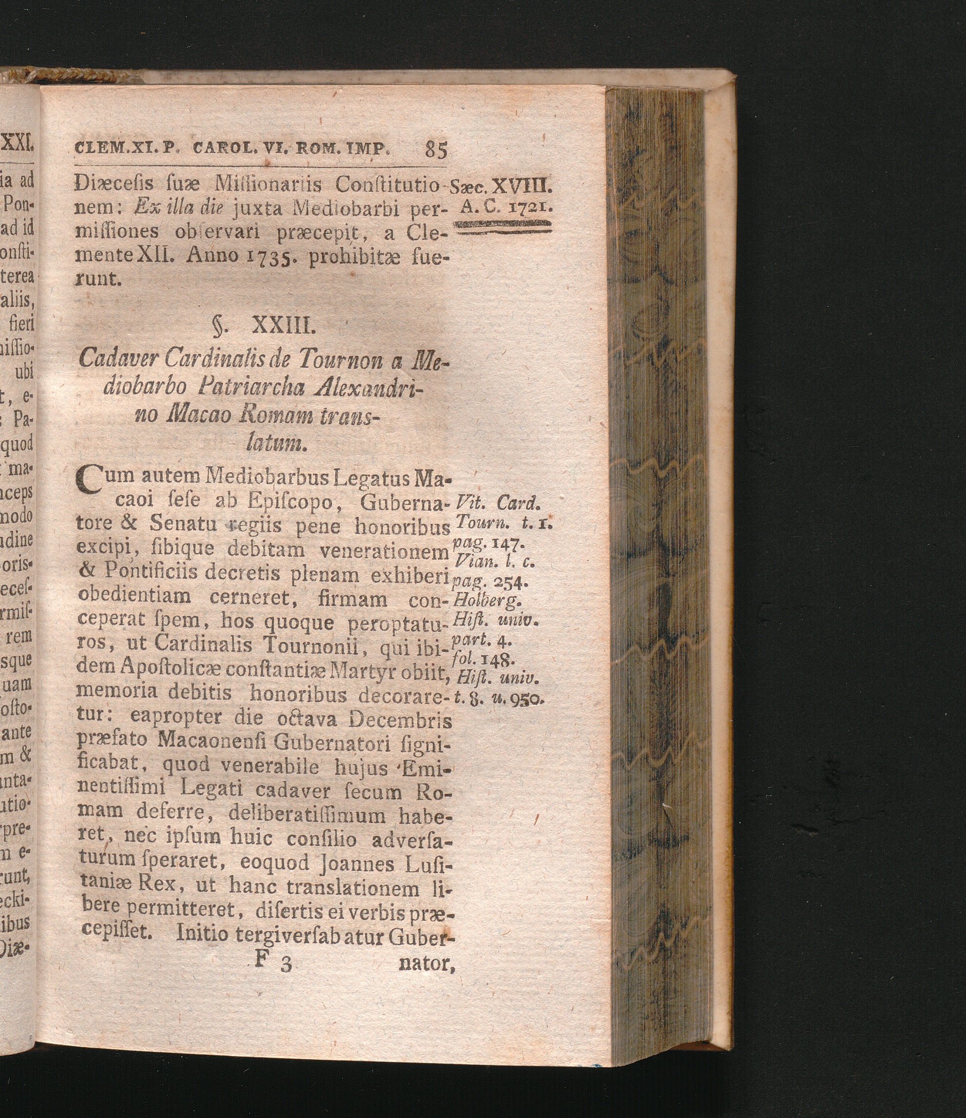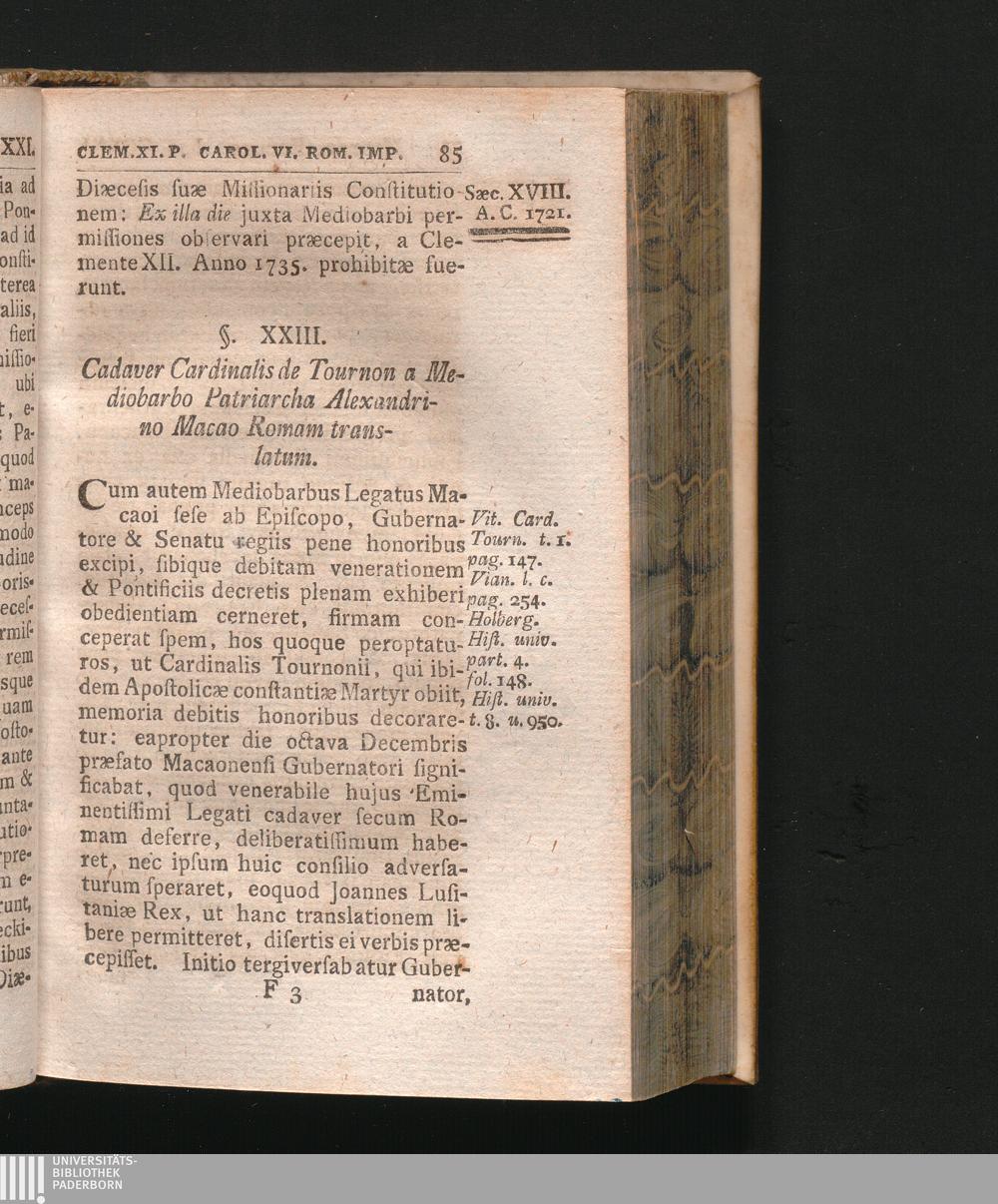 §. 23. Cadaver Cardinalis Tournonii a Mediobarba Patrarcha Alexandrino Macao Romam[...]