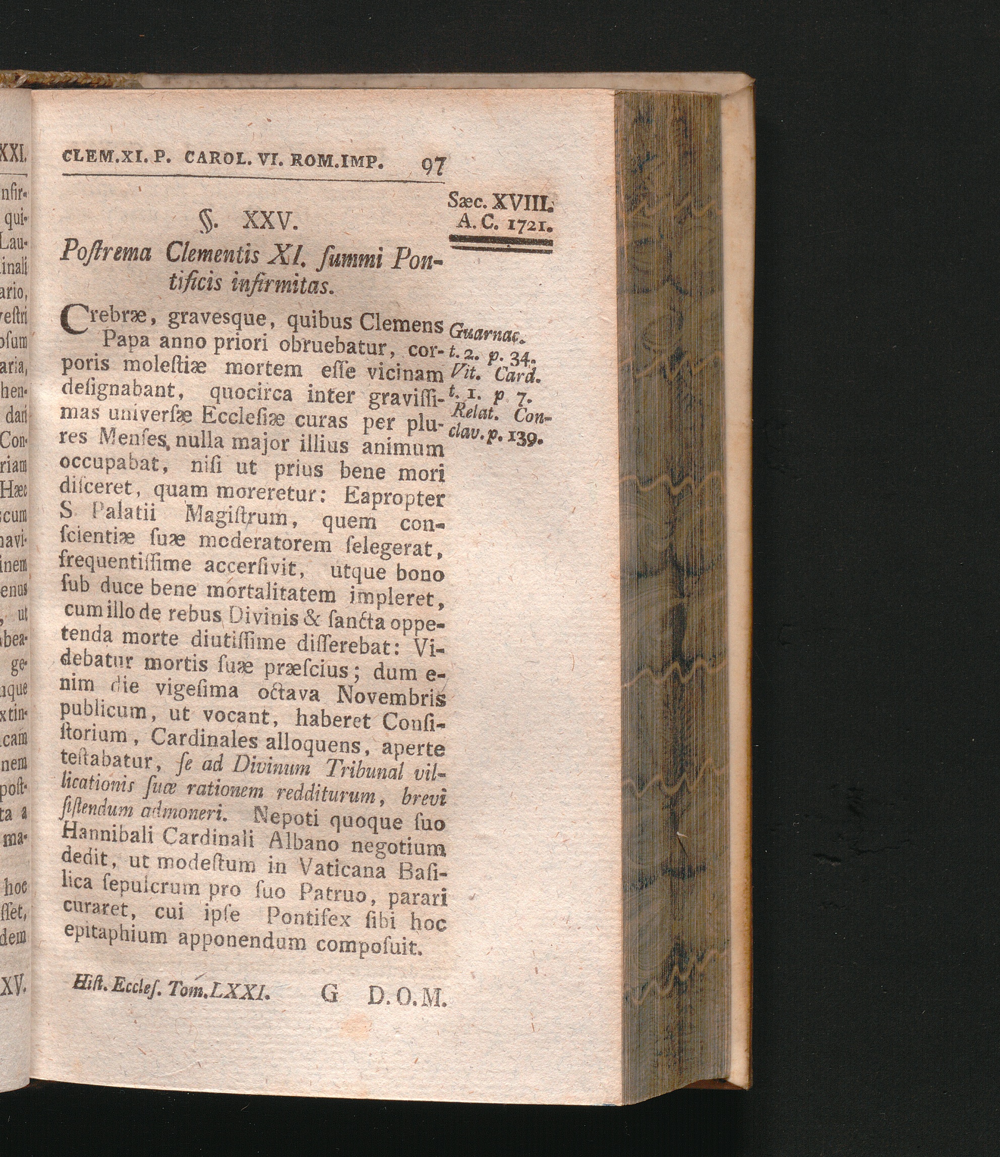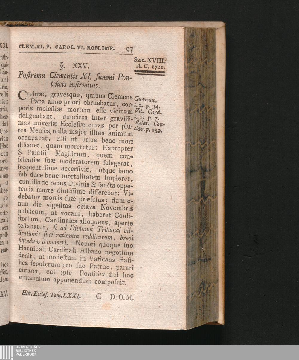 §. 25. Postrema Clementis XI. summi Pontificis infirmitas.