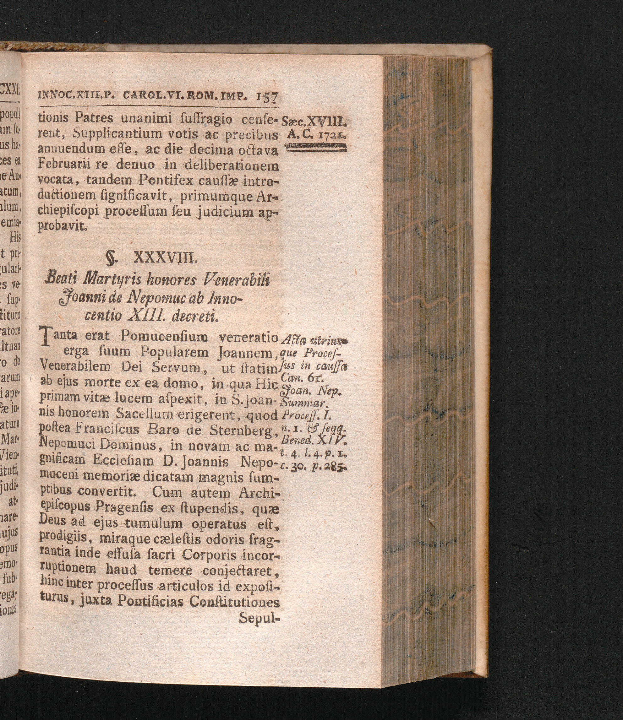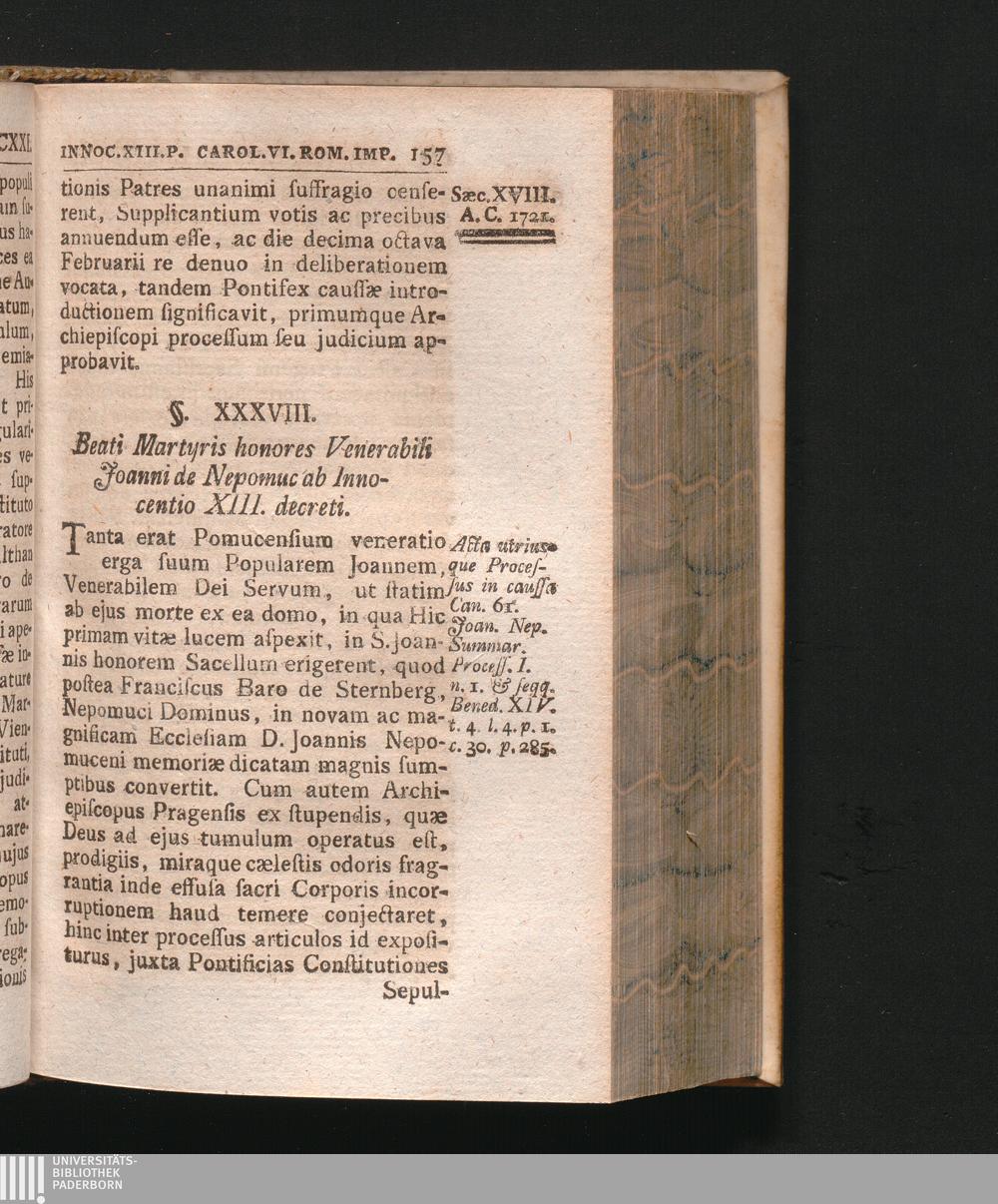 §. 38. Beati Martyris honores Eidem Venerabili ab Innocentio XIII. Papa decreti.