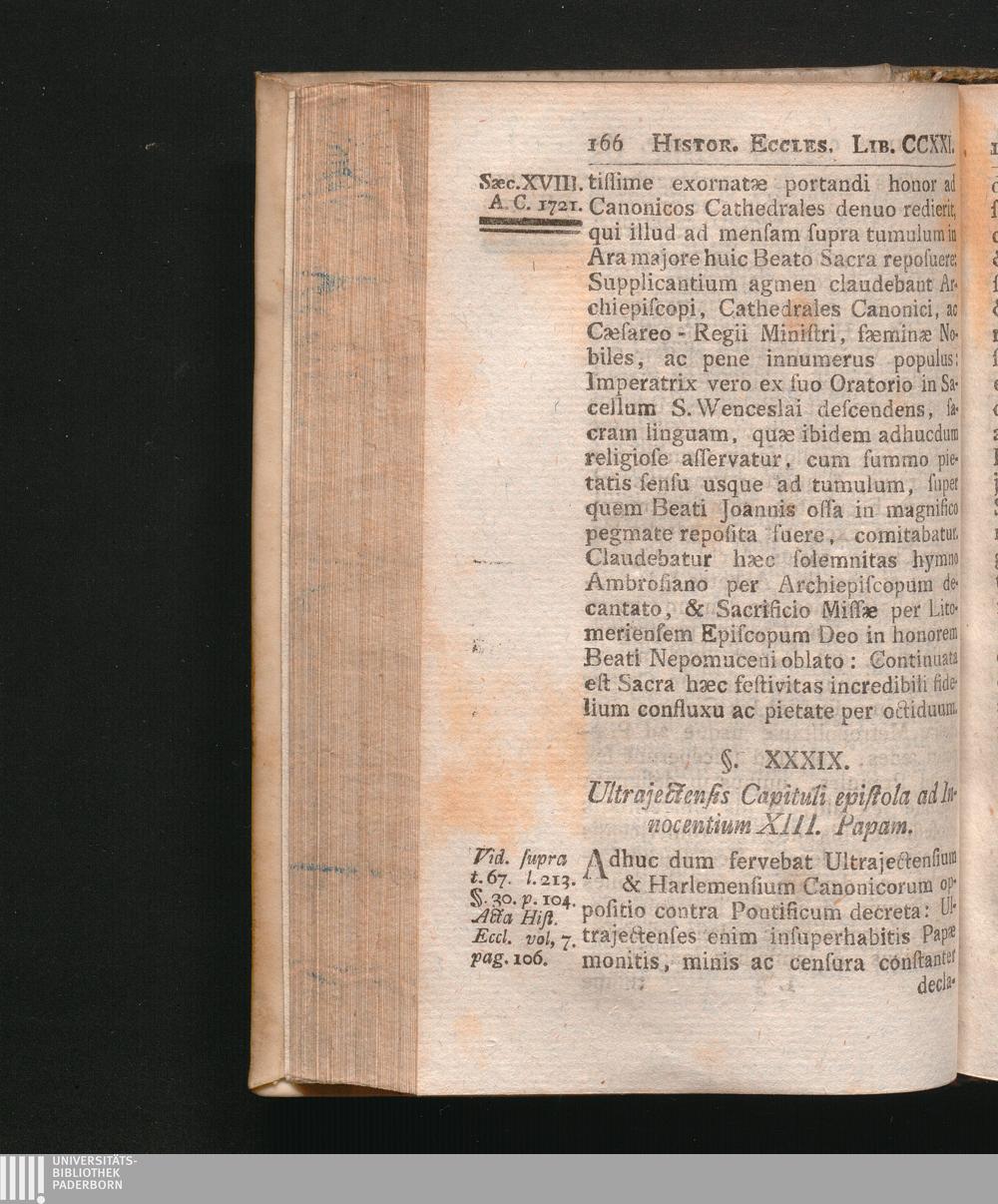 §. 39. Ultrajectensis Capituli epistola ad Innocentium XIII. Papam data.