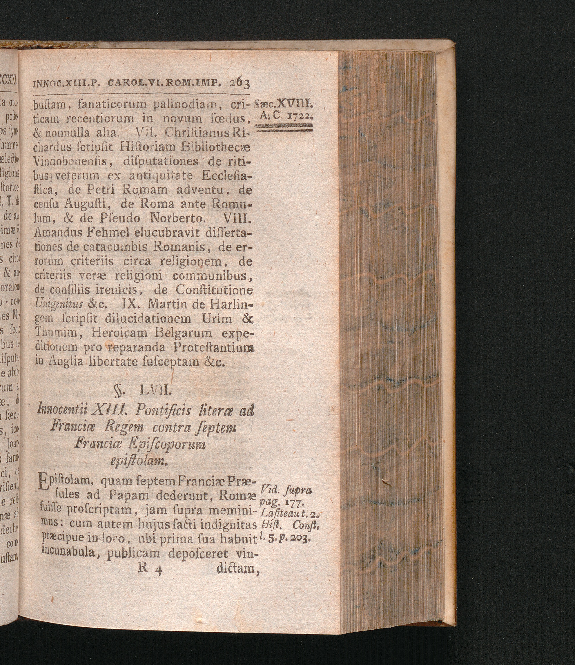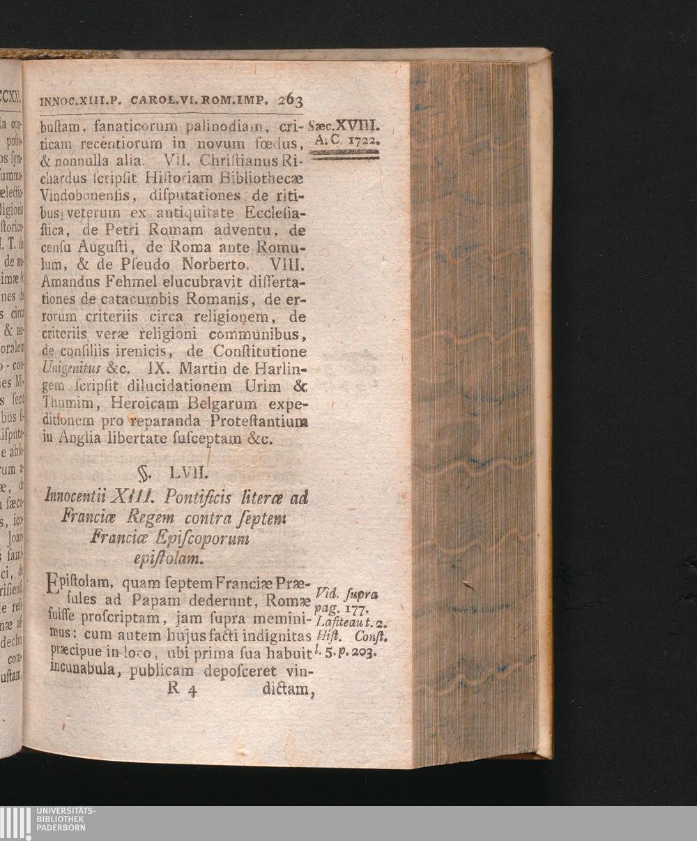 §. 57. Innocentii XIII. Pontificiæ literæ ad Ludovicum XV. Franciæ Regem contra septem[...]