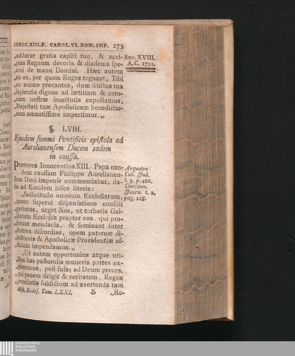 Continuationis Tomus Quadragesimus Septimus, Seu In Ordine Tomus LXXI. (1783) Ab anno Christi 1721. usque ad annum 1724