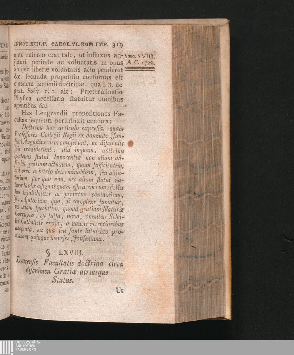 §. 68. Duacensis Facultatis animadversio circa discrimen gratiæ utriusque status[...]