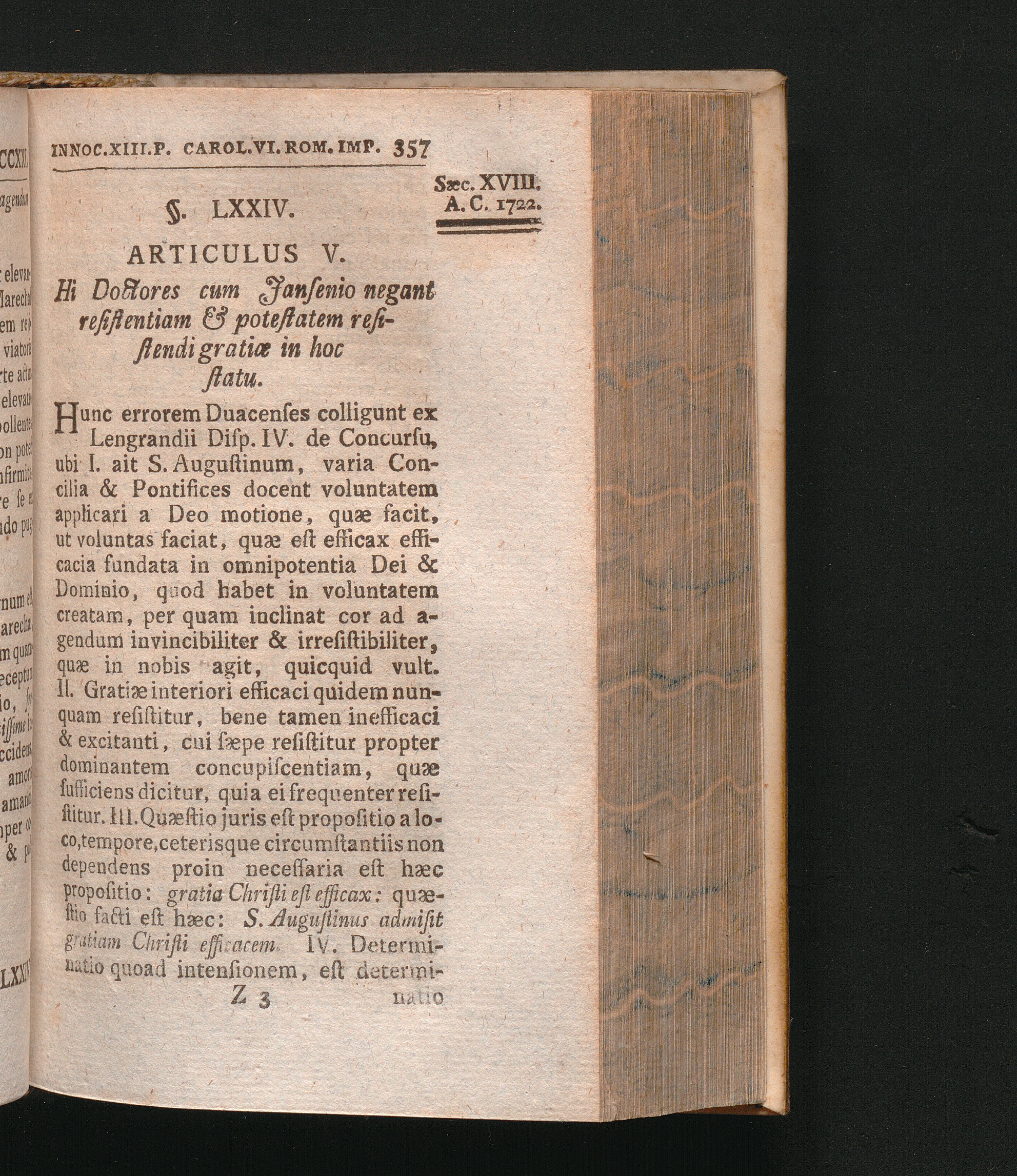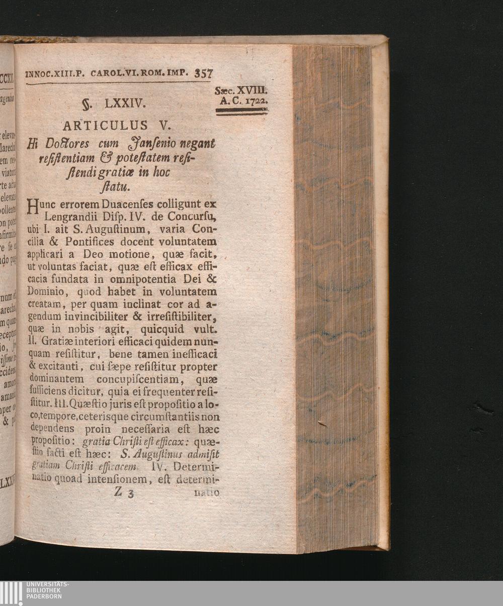 §. 74. Articulus V. Hi Doctores cum Jansenio negant resistentiam & potestatem resistendi[...]