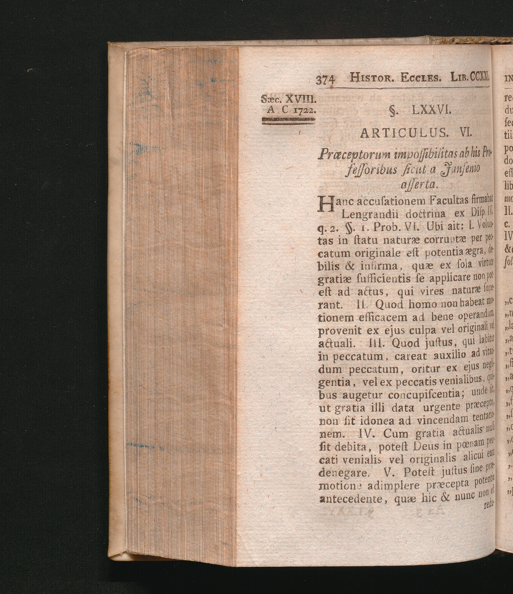 §. 76. Articulus VI. Præceptorum impossibilitas ab his Professoribus, sicut a Jansenio[...]