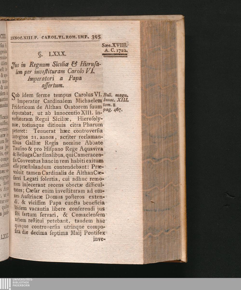 §. 80. Jus in Regnum Siciliæ & Jerusalem per investituram Carolo VI. Imeratori a[...]