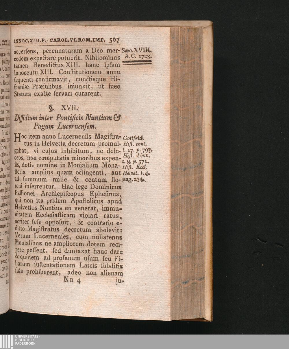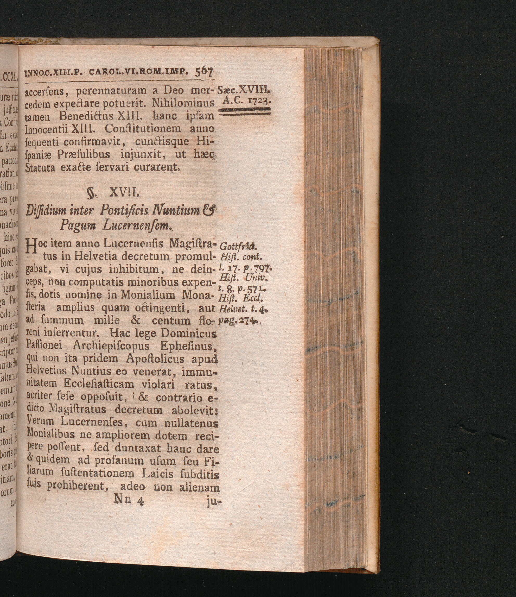 §. 17. Dissidium inter Pontificis Nuntium & Pagum Lucernensem.