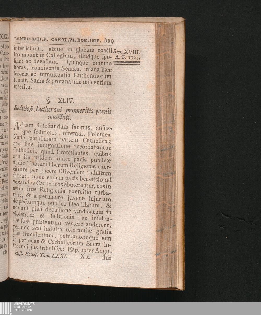 Continuationis Tomus Quadragesimus Septimus, Seu In Ordine Tomus LXXI. (1783) Ab anno Christi 1721. usque ad annum 1724